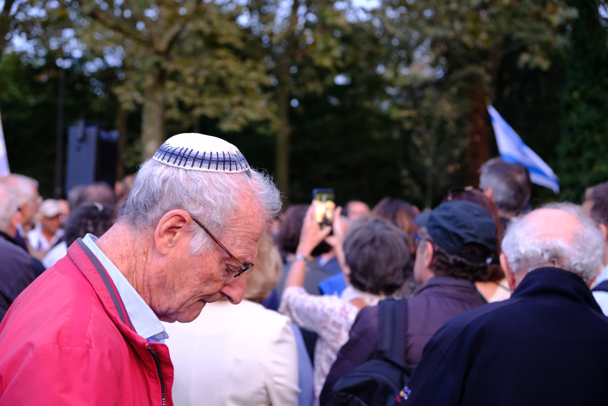 Cette photo a été prise lors du premier rassemblement en hommage aux victimes israéliennes du 7 octobre. 600 personnes se sont retrouvées devant le Conseil de l’Europe, le lundi 9 octobre au soir.