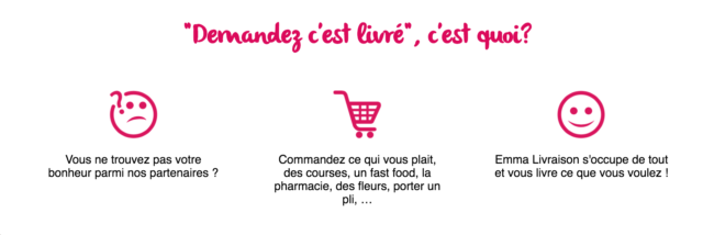 Jusqu’ici à Strasbourg, les services de livraison étaient tous spécialisés dans un type de produit : les repas, de l’alcool, des produits de labo, etc. Le fondateur d’Emma Livraison, Mohammed Gherraf, assure que son entreprise est la première du genre. En fait, des sites comme Toktoktok ou Clac des doigts proposent déjà des services similaires, mais le premier n’est pas disponible à Strasbourg et le second ne fonctionne que la nuit.