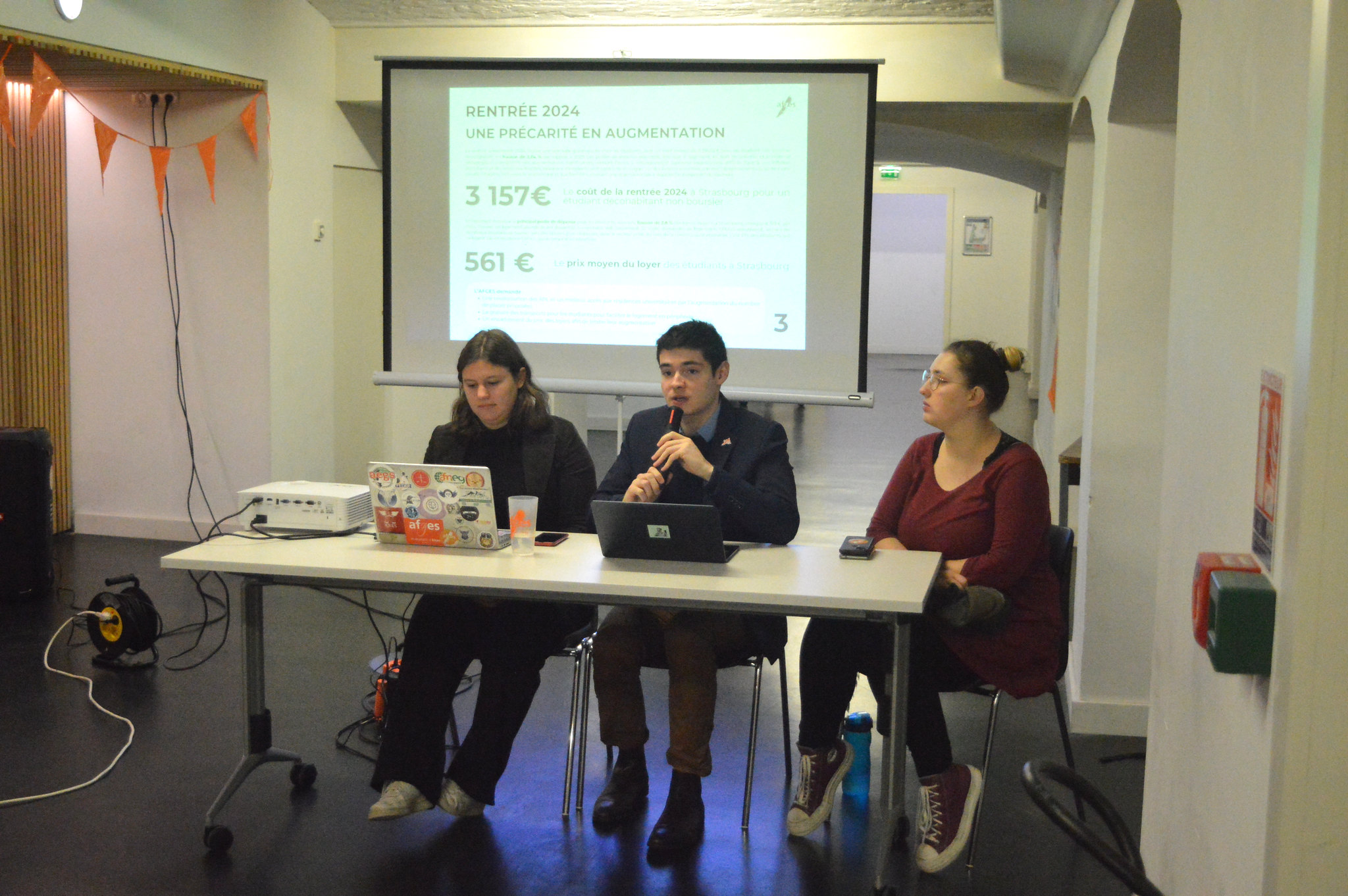 « La précarité des étudiants ne cesse de croitre, ils sont de plus en plus nombreux à sauter des repas, ou à dormir à la rue », introduit Chloé Heyd, mercredi 20 novembre. Présidente de l’Association fédérative générale des étudiants de Strasbourg (Afges), elle relate les réalités sociales qu’elle a rencontrées en participant à la gestion du dispositif de logement transitoire de son organisation.