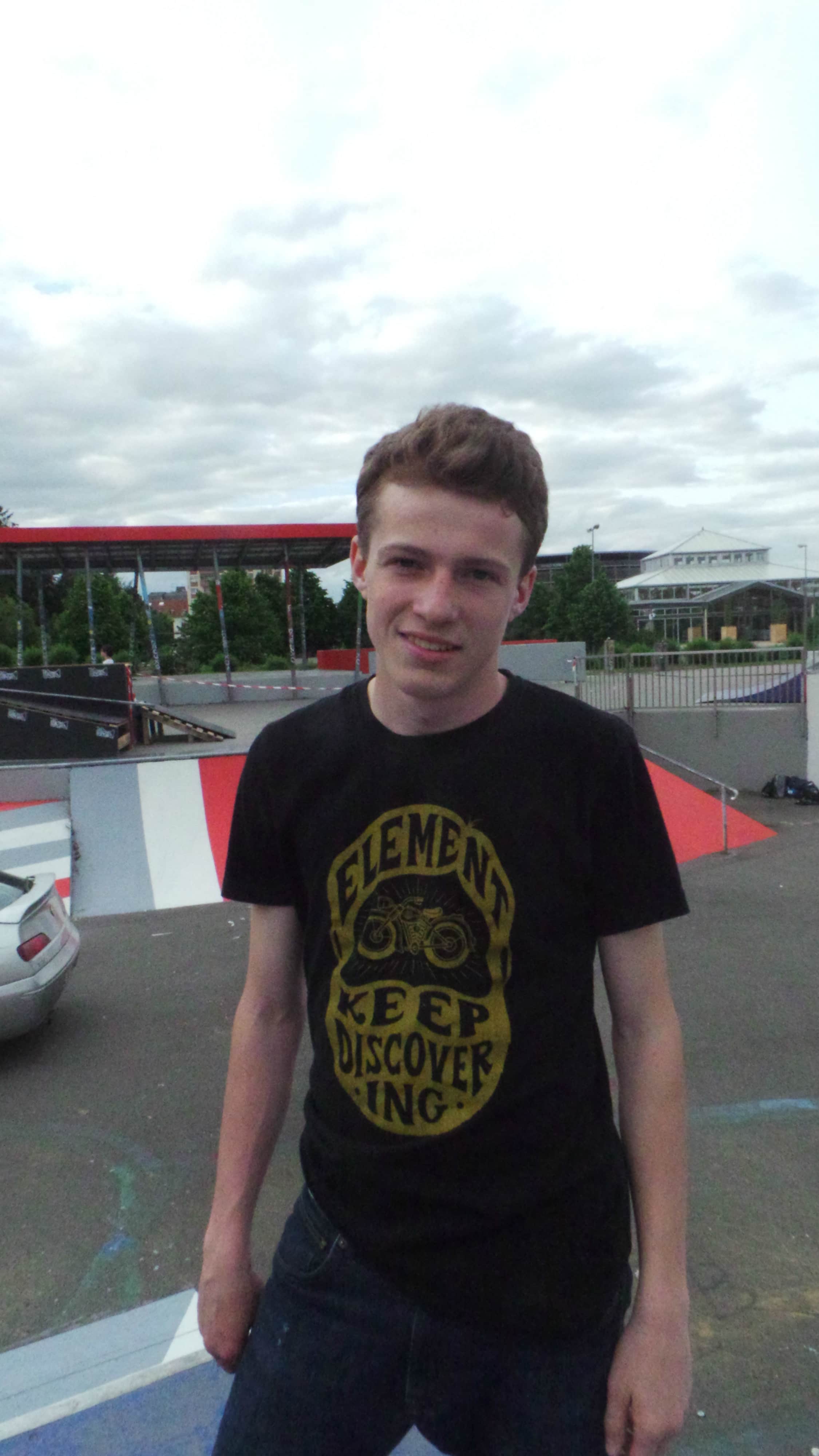« Sur Strasbourg, comme on n’est pas nombreux, c’est un peu une grande famille. Quand tu vois un skateur, tu vas le voir… Au lycée, beaucoup ont peur de parler avec les profs. Moi je peux discuter avec les adultes normalement. On a l’habitude car le skate rassemble des tranches d’âge et des couches différentes de la société. Des fils à papa, des mecs un peu plus “trash”, des anciens, des jeunes… Il y a aussi pas mal d’étrangers qui viennent étudier à Strasbourg et qui skatent. On a rencontré un marocain, un irlandais, un espagnol… On arrive toujours à communiquer car en skate il y des mots universels. Un ollie ou un flip se disent de la même façon dans tous les pays. Lors du contest à Würzburg, on communiquait grâce aux figures ! »