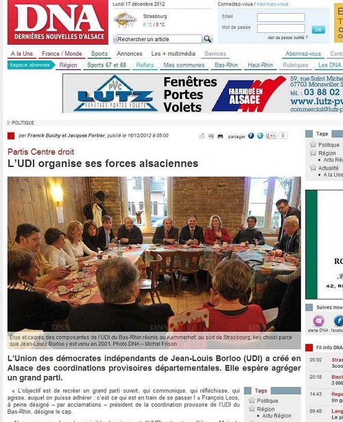 Et c’est parti pour l’Union des Démocrates et Indépendants (UDI) en Alsace ! Dans les DNA, le parti centriste de Jean-Louis Borloo annonce la création de « coordinations provisoires » départementales, présidées par l’ancien député UMP du Bas-Rhin, François Loos. Des élus de l’Alliance centriste, du Nouveau Centre, du Parti radical et de Force européenne démocrate et des indépendants se sont réunis, samedi dernier à Strasbourg avec peut-être l’ambition de s’unir autour de la démarche de Jean-Louis Borloo.