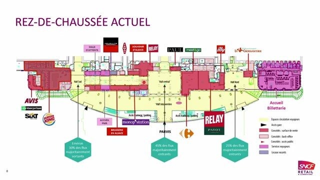 « Au vu des 20 millions de voyageurs par an dans la gare de Strasbourg, la taille des commerces est inappropriée. » Le 13 avril 2021, Dominique Tramini, chargé d’études et commercialisation, a dévoilé le futur de la gare de Strasbourg. La SNCF ambitionne de créer « un lieu de destination et de vie » avec une « diversité des commerces » et un « aménagement de terrasses sous la verrière ». La branche « Retail et Connexions » de la SNCF espère ainsi exploiter une zone de chalandise de plus de 16 000 habitants et 17 000 salariés à 10 minutes à pied.