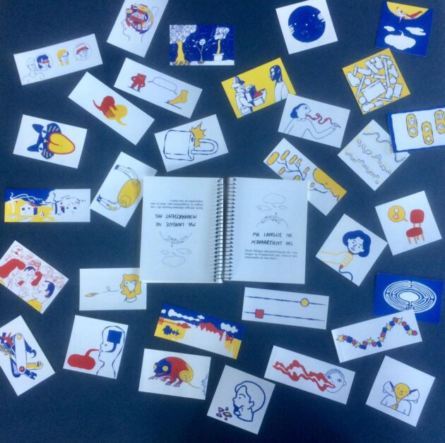 Autre rendez-vous de l’arche, l’atelier Converser, créé par Élise Simonet. Un projet déjà entamé à Bruxelles et Fribourg. C’est un jeu de cartes illustré par les étudiants de la HEAR et accompagné d’un livret explicatif. Elle l’a imaginé à partir de conversations avec des personnes et couples polyglottes, immigrés, nouveaux arrivants… Depuis quelques semaines, ce sont des Strasbourgeois qui l’accueillent chez eux pour qu’elle continue de créer le jeu. Elle questionne le rapport à la langue, dans l’intime, dans son utilisation et dans les ressentis. Le jeu et son livret forment un condensé de ce qu’elle apprend lors de ces entretiens. Durant le week-end, le public est donc invité à s’emparer du jeu.
