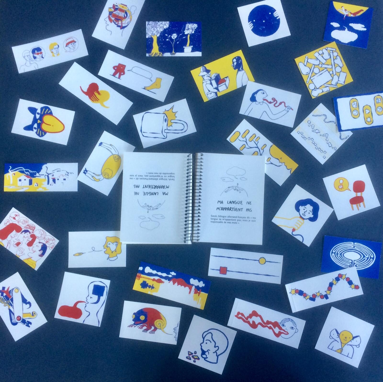 Exemplaires du jeu de carte imaginé par Élise Simonet et les étudiants en illustration de la Haute École des Arts du Rhin, dans le cadre de son atelier Converser (document remis).