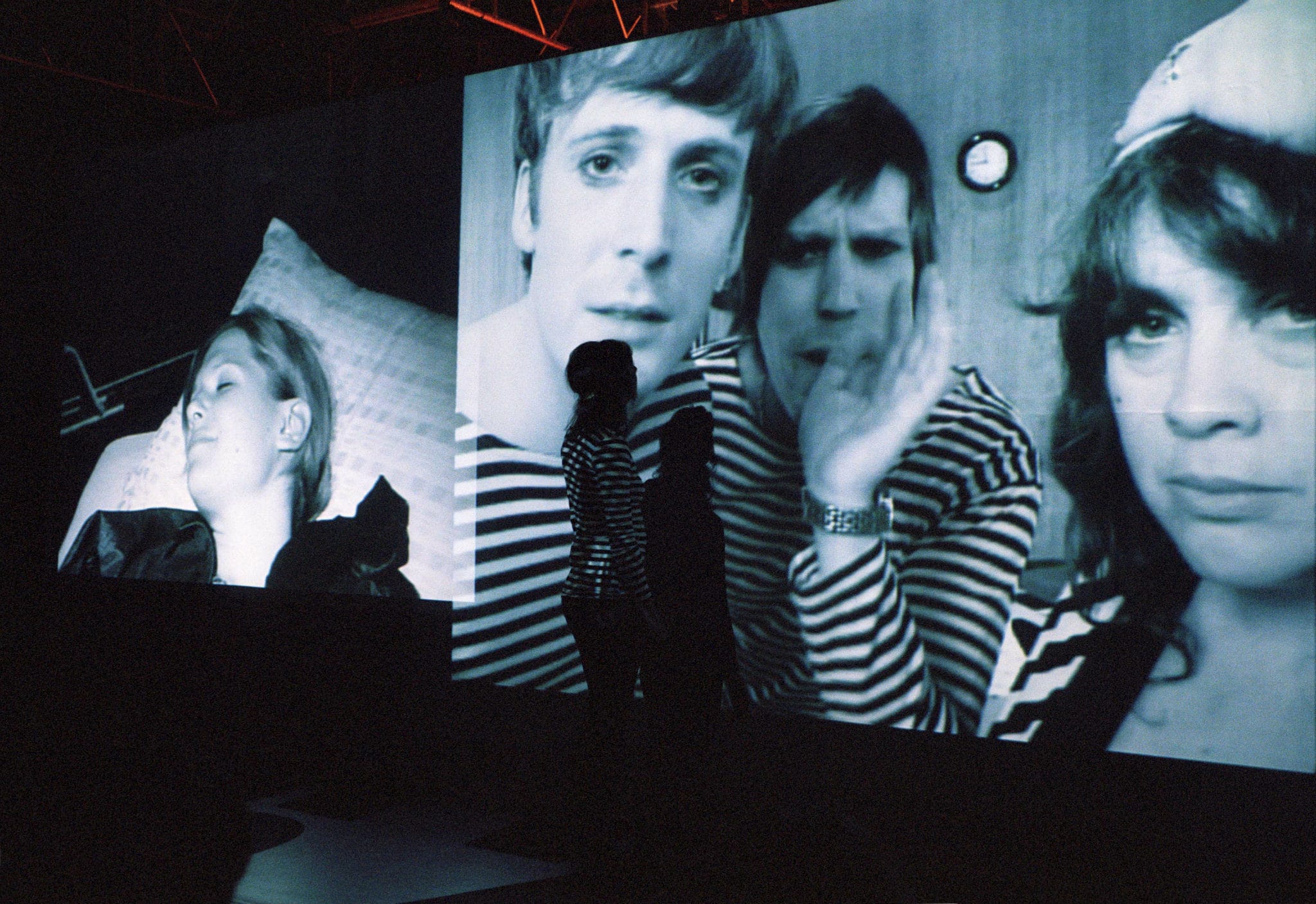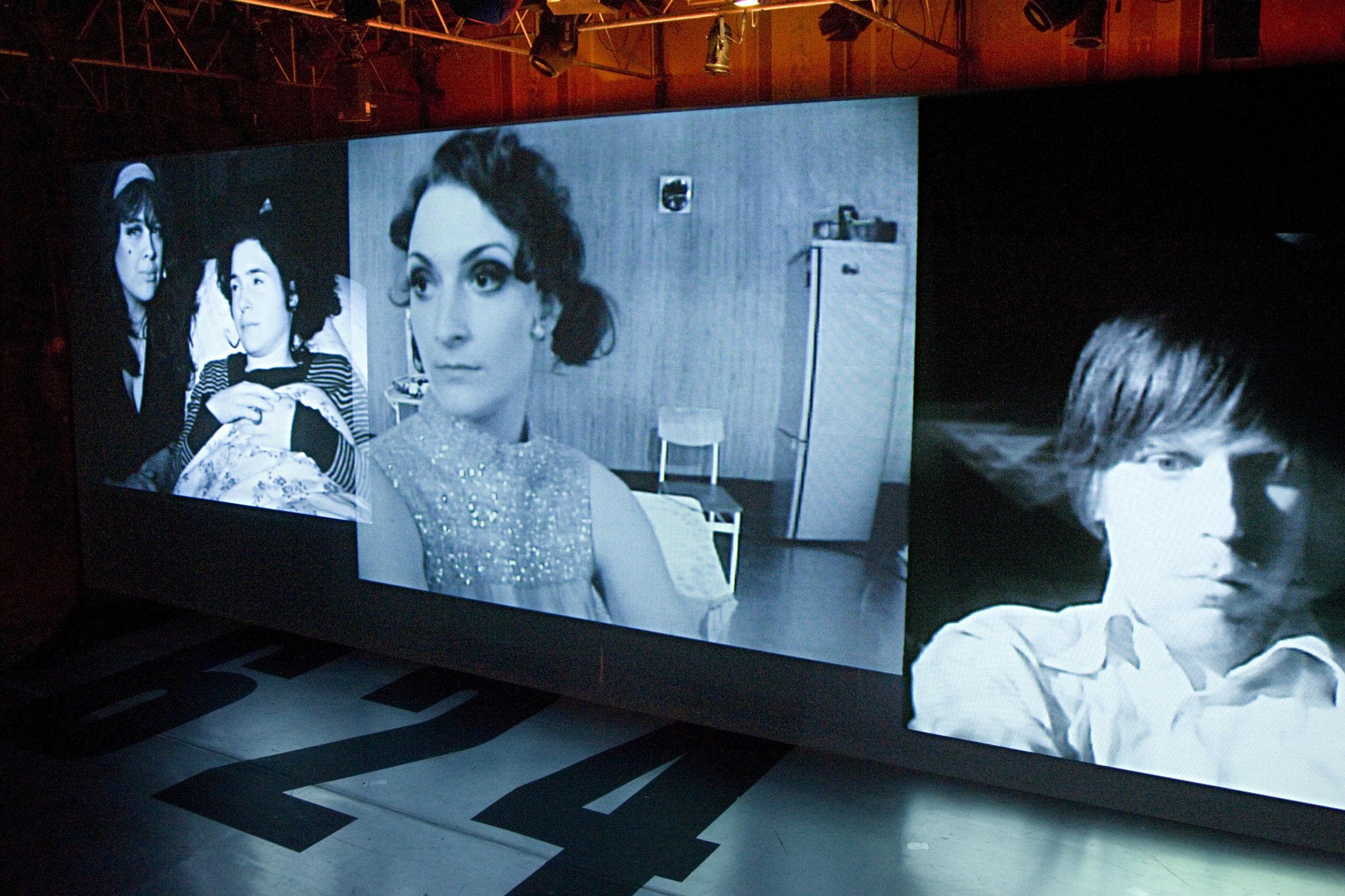 Projetés en 1965 dans une ambiance en noir et blanc, qui tranche avec les couleurs acidulées et explosives propagées par la pop culture, nous sommes assis devant trois écrans, prêts à assister à un remake live du film Kitchen, création expérimentale déjantée d’Andy Warhol.