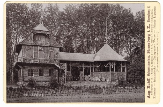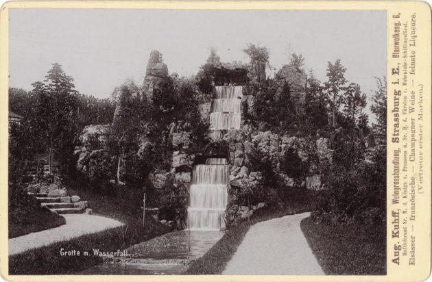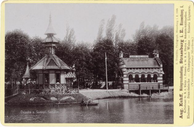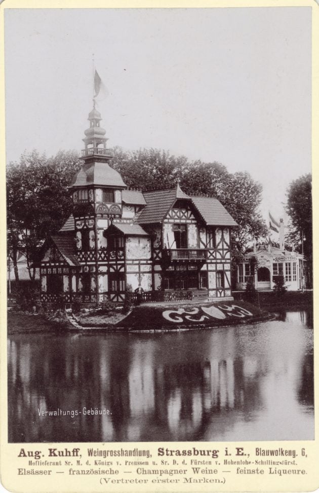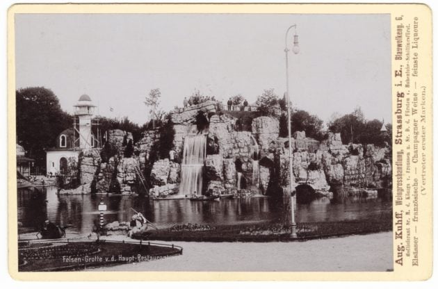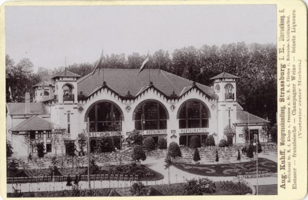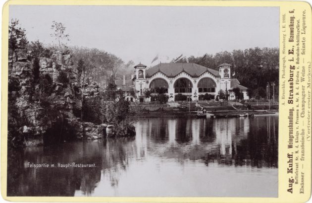 Du 18 mai au 15 octobre 1895, l’Orangerie accueillait l’exposition industrielle. Le parc est agrandi vers le sud-est, le lac est creusé, la cascade est créée… Un grand restaurant est construit à l’emplacement de l’actuel bowling, mais rasé en 1961 (cliquez sur les photos ci-dessous pour les agrandir). D’autres aménagements existent encore. Une maison rustique de Molsheim est déplacée jusque dans le parc pour donner un aperçu aux visiteurs de la vie à la ferme en Alsace. Il s’agit de l’actuel Büerehiesel, un restaurant gastronomique.