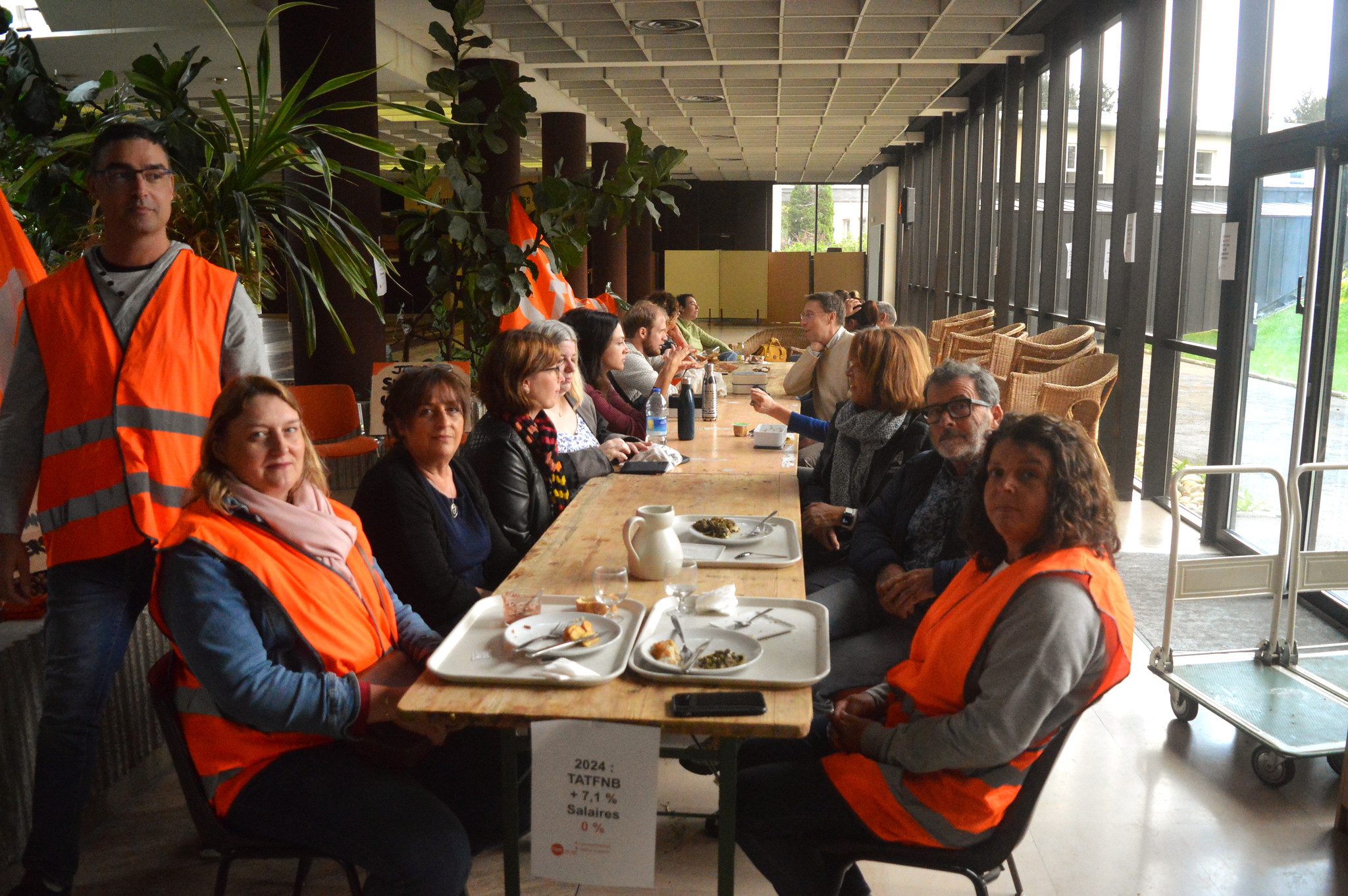 Une trentaine d’agents sont assis dans le hall du siège de l’organisation à Schiltigheim, à l’appel de la CFDT dans le cadre d’une mobilisation nationale. Un rassemblement similaire a lieu au même moment sur le site de Sainte-Croix-en-Plaine (Haut-Rhin). Certains sont en grève pour la journée. « Nous demandions une augmentation de 1,25% du point d’indice en juin 2024 mais elle a été refusée, résume Aude Forget, déléguée syndicale CFDT :