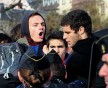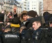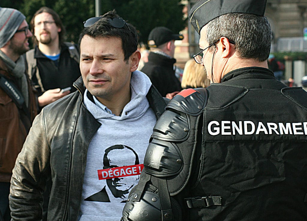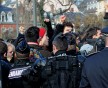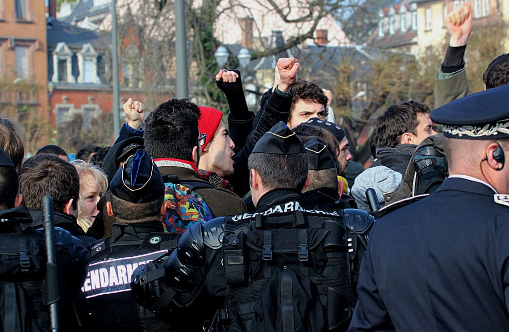 Une centaine de manifestants l’attendait, rassemblés à l’appel de syndicats d’étudiants et de professeurs de l’université et de partis de gauche. Ils ont exprimé leur désaccord sur la baisse de 20% des dotations de l’Etat à l’UdS. Un groupe d’une vingtaine de militants de la Manif pour Tous opposé au mariage homo et à la politique du président de la République était également présent. Le ton est vite monté entre les deux groupes, provoquant des bousculades.