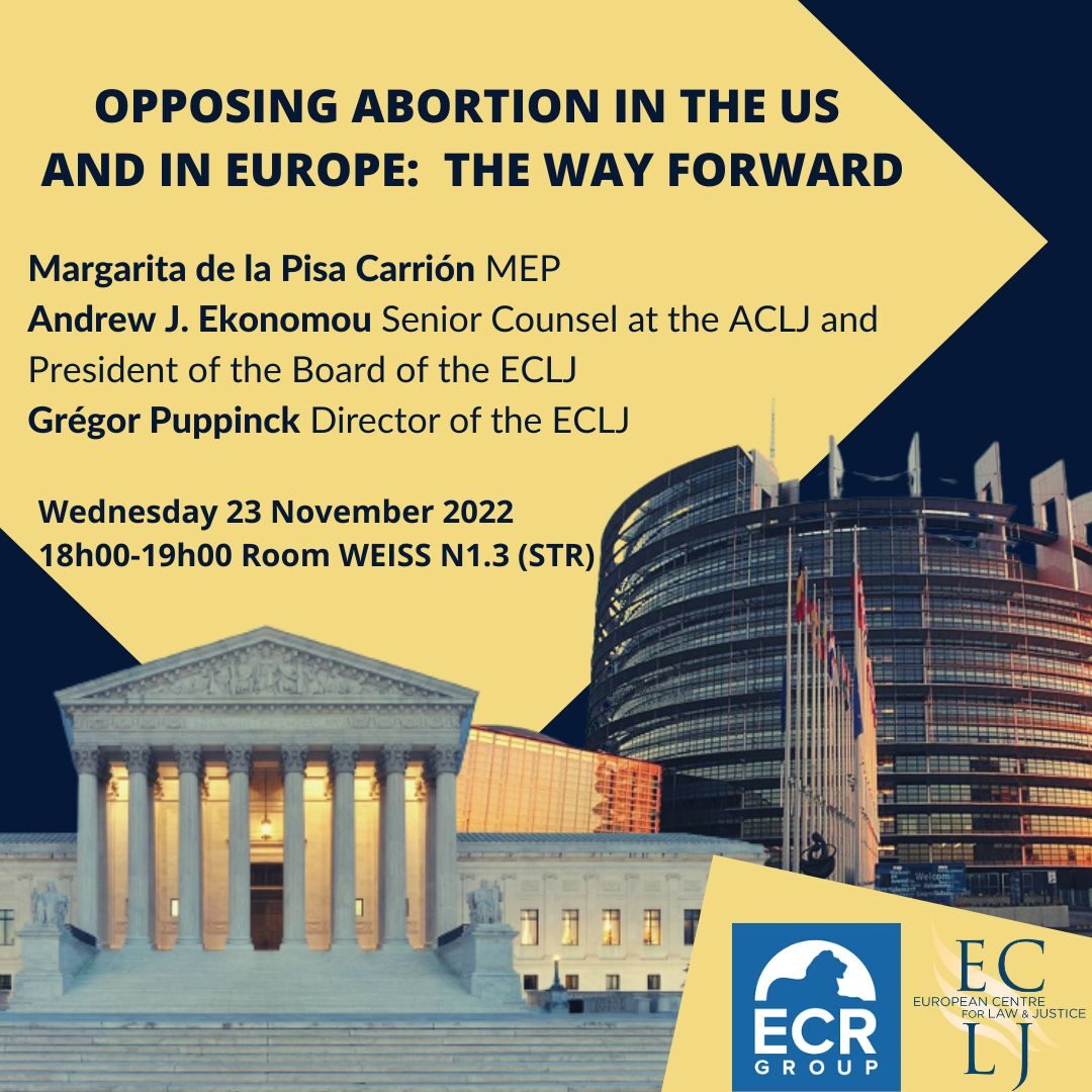 Alors que les députés européens siègent en session plénière depuis lundi et jusqu’au jeudi 24 novembre, l’ONG European Centre for Law & Justice (ECLJ) organise, avec le soutien d’une députée européenne, une conférence anti-avortement au sein même du Parlement européen. Titre de la conférence : « Agir contre l’avortement aux États-Unis et en Europe : Quelle marche à suivre ? ».
