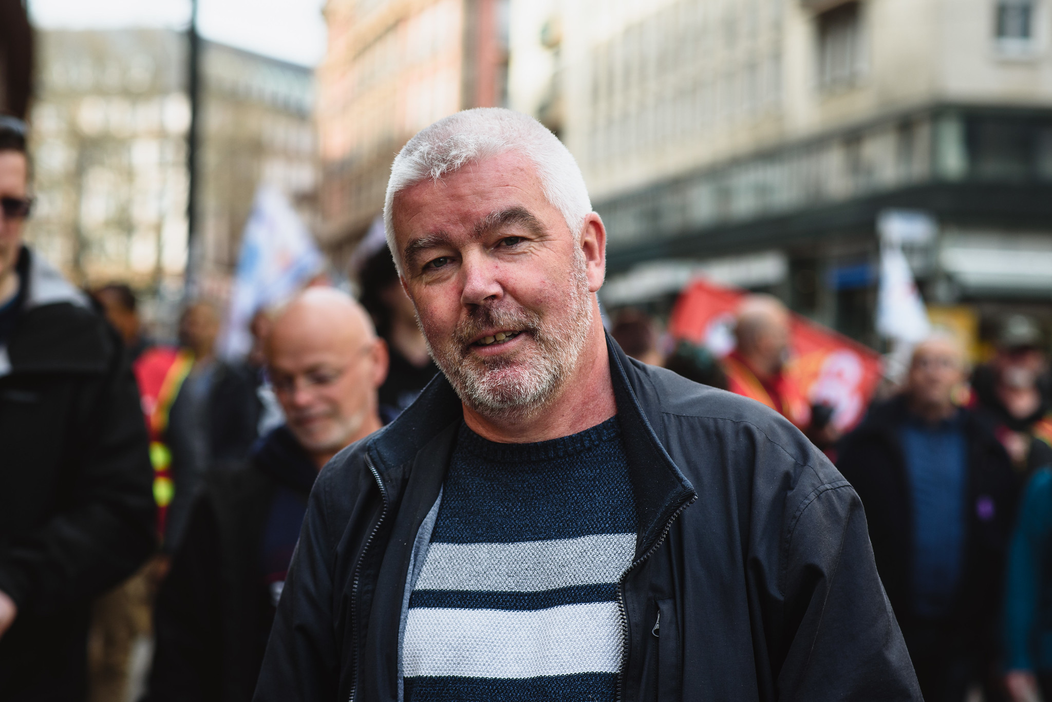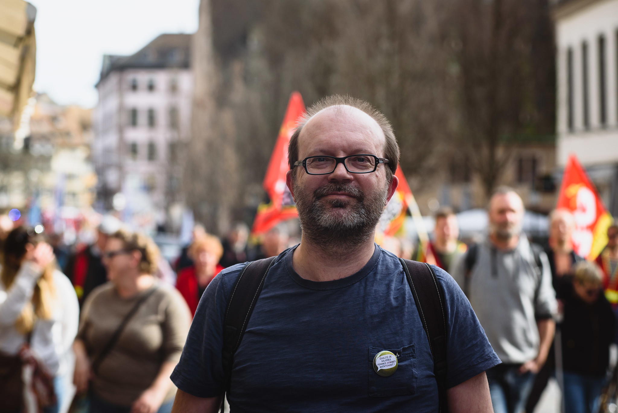 Un autre Jérôme, regard sérieux et voix posée, fait partie des nombreux fonctionnaires hospitaliers présents dans le cortège. Lui est aide-soignant aux urgences adulte de l’hôpital de Hautepierre. Adhérent à Force Ouvrière, il raconte son quotidien, où le travail prend une place considérable :