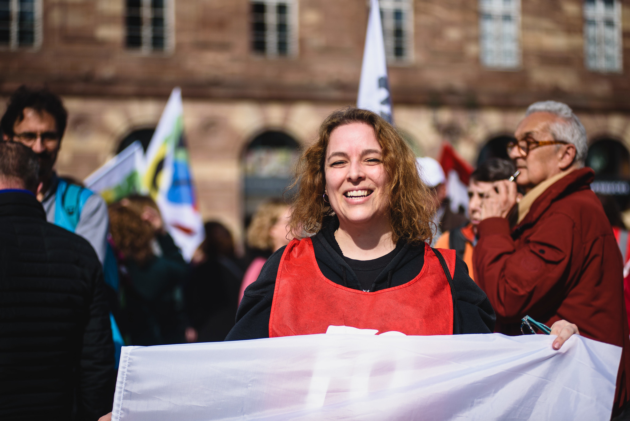 À l’appel des organisations syndicales de la fonction publique, Louiza fait partie du millier de manifestants mobilisés pour une revalorisation du point d’indice ce 19 mars à Strasbourg. « Je gagne un peu plus de 1 000 euros nets. Ce n’est vraiment pas assez, il nous faudrait au moins 1 500 ou 1 700 euros », poursuit Louiza, encouragée par ses amies :
