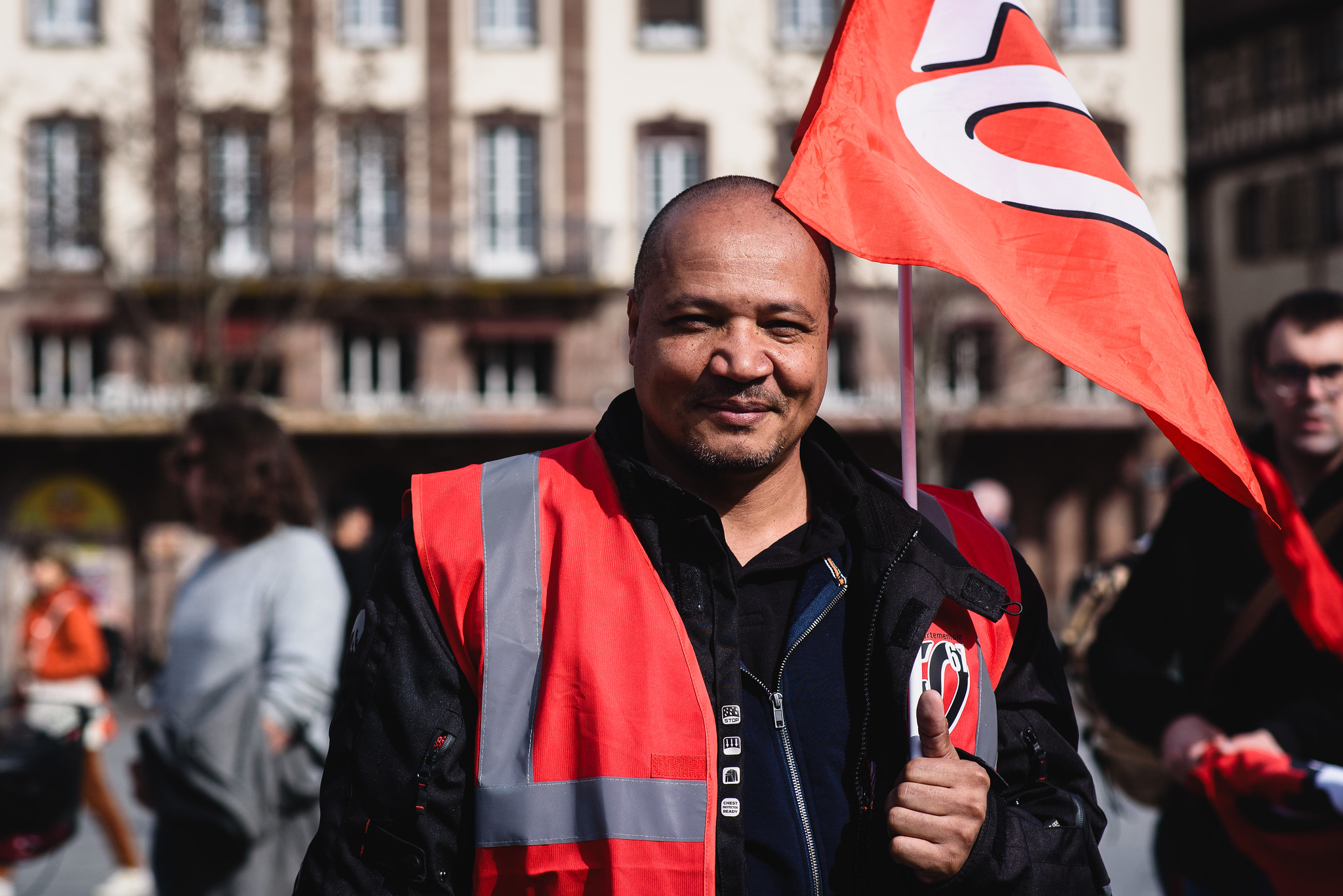 À quelques mètres, Daniel semble connaitre du monde en tête de manifestation. « 33 ans d’ancienneté au service espaces verts de la Ville de Strasbourg et élu CGT, se présente t-il, et je gagne 1 900 nets par mois ». Avec deux enfants qui font des études et vivent encore à la maison, il doit se restreindre, notamment pour les sorties. « On invite des gens à la maison plutôt », positive Daniel. Mais il remarque que son boulot est de plus en plus intense, et que lui se précarise avec l’inflation :