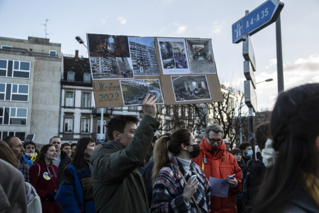 Samedi 26 février place Kléber à Strasbourg, plus de 3 000 personnes se sont rassemblées à l’appel de l’association de la diaspora ukrainienne à Strasbourg, PromoUkraïna, pour dénoncer l’invasion russe de l’Ukraine. Des rassemblements similaires ont eu lieu dans plusieurs villes de France et d’Europe.