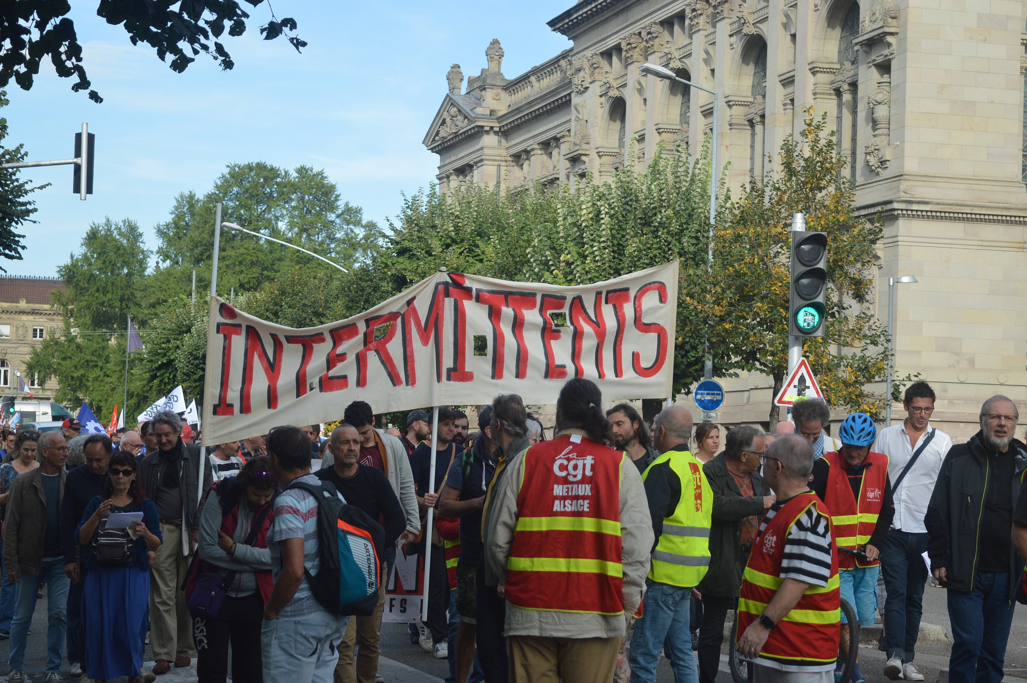 À quelques mètres, Nicolas et Clothilde, respectivement comédien et scénographe, portent une bannière ciglée « Intermittents ». « J’ai un enfant et entre 1 500 et 2 000 nets donc c’est chaud », constate Nicolas. Clothilde est « plutôt à 1 300 euros nets ». « Je m’en sors parce que je suis en colocation, je n’ai pas de voiture ni d’enfant à charge », affirme la jeune scénographe. Les deux craignent qu’une proposition du Medef, économiser 15% sur des annexes du régime de l’assurance-chômage, aboutisse à une baisse des salaires et des cachets.