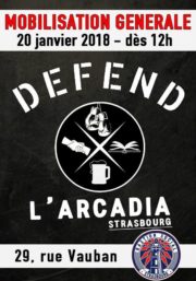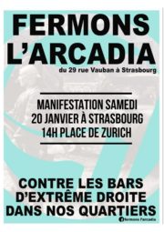 Pour la fermeture de L’Arcadia, samedi 20 janvier à 14h, place de Zurich, à Strasbourg.