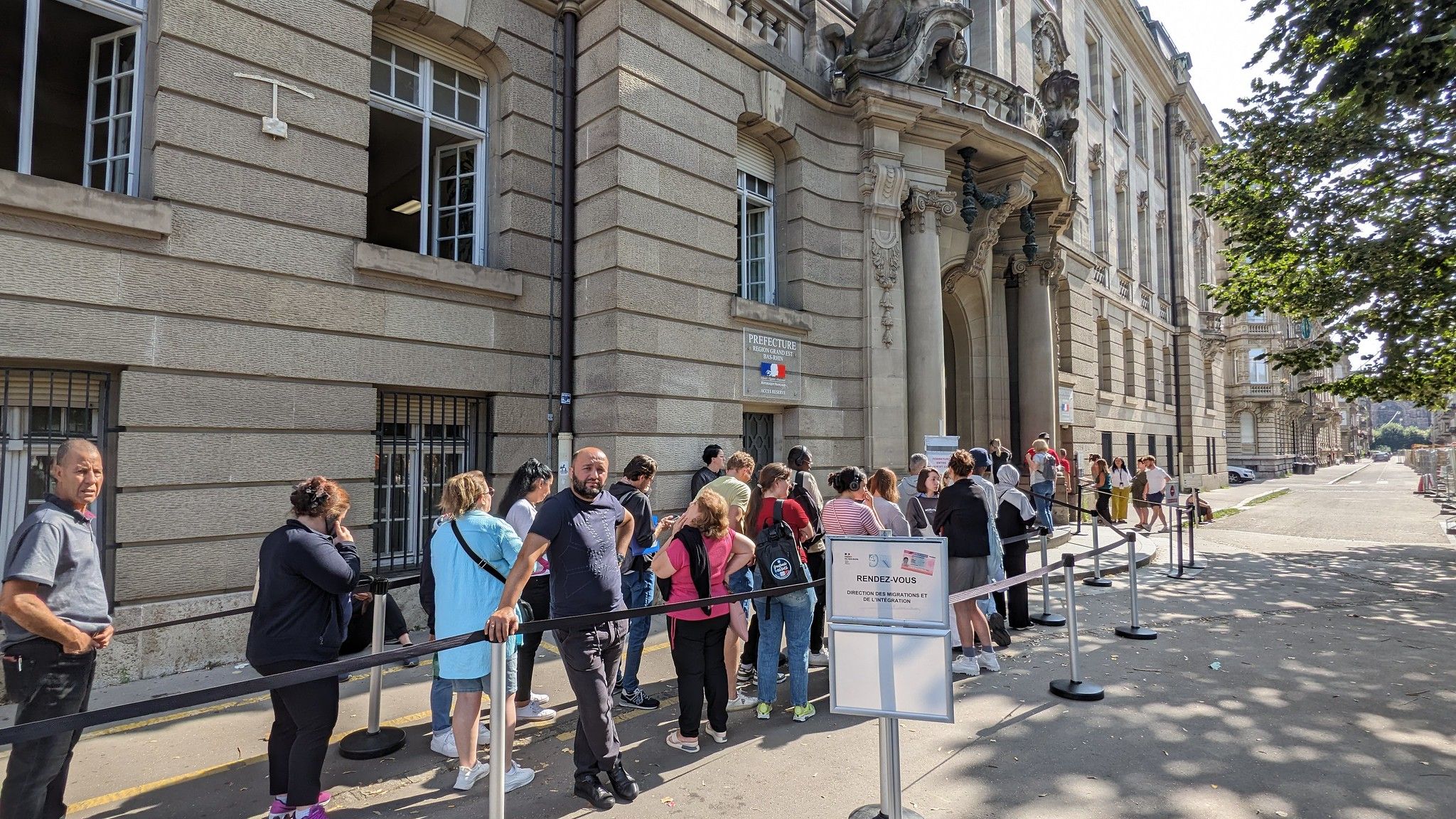 « C’est là qu’une file d’usagers, en général d’origine étrangère, s’étale, chaque jour de bon matin jusqu’à 16h, face à une préfecture inflexible, infranchissable et autoritaire, jusqu’au parking à vélo qui est devant la BNU, symbole de culture et de civilisation. »