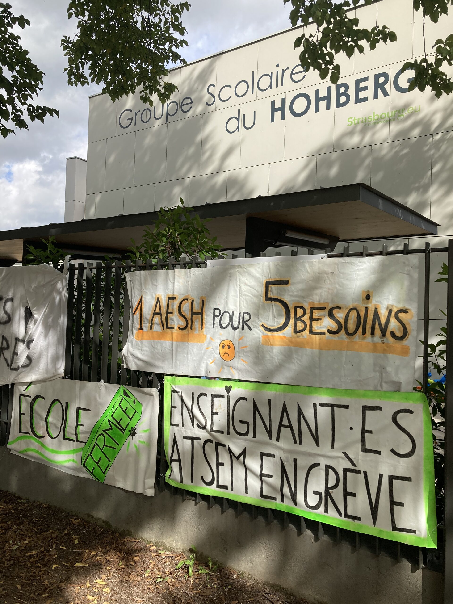 Face à ce constat, une journée de mobilisation se prépare dans certaines écoles de Strasbourg, jeudi 18 septembre. À l’école Saint-Jean, dans le quartier des Halles, les professeurs feront usage de leur droit de grève, à l’exception de trois d’entre eux. Une banderole sera accrochée au portail : « Enfants à la rue, enfants sans AESH, familles et personnels en détresse. » Même mobilisation à l’école maternelle du Hohberg. Des parents d’élèves bloqueront l’école dès 8h30, tracts et pancartes en main, tandis que le corps enseignant fera grève.