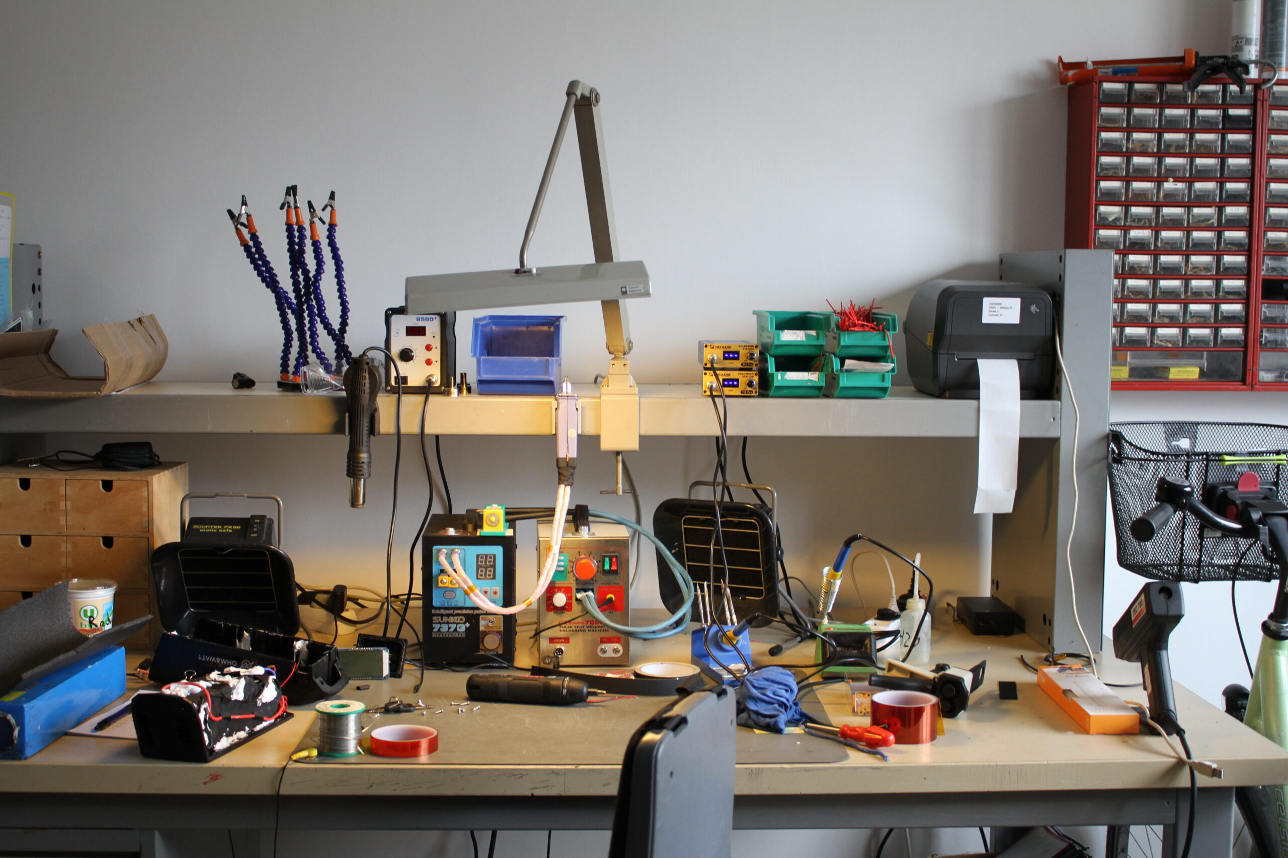 Thomas Hampe-Kautz assemble les batteries des vélos à assistance électrique sur place, dans l’atelier derrière la boutique Ohm & Watt. Photo : LM / Rue89 Strasbourg