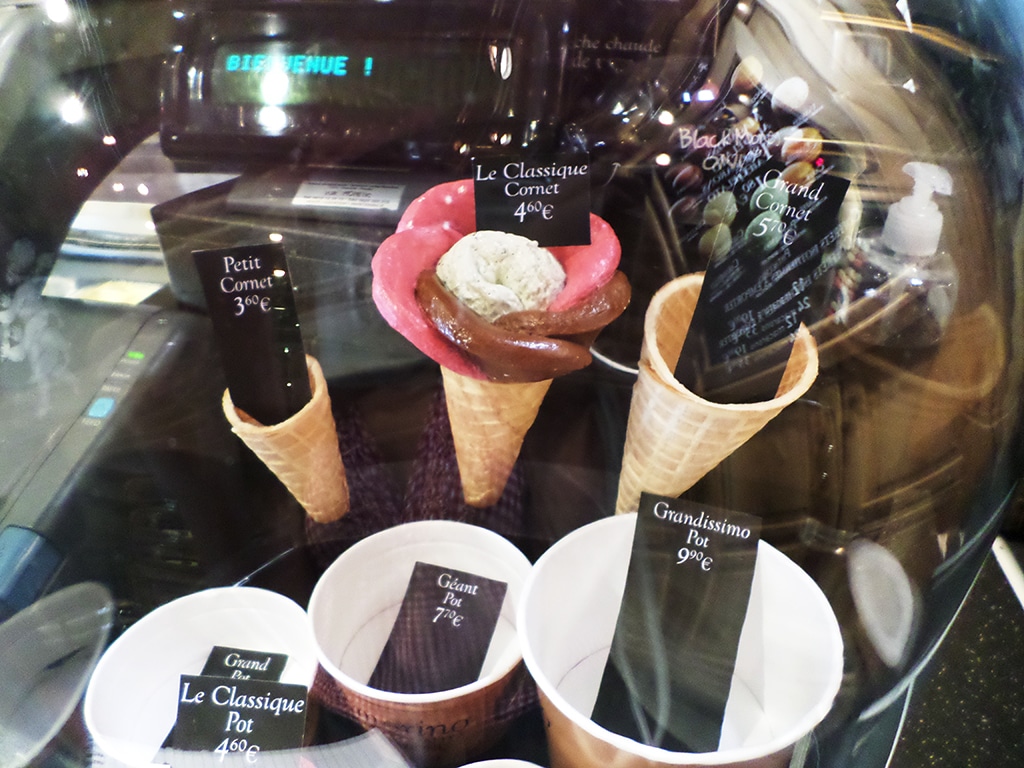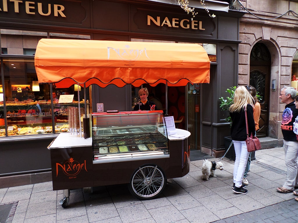 Tout comme Christian, Naegel, pâtissier-traiteur, la rue des Orfèvres, a sorti ses bacs de glace. Institution historique installée depuis 1927, l’enseigne se targue elle aussi de vendre des glaces artisanales réalisées dans leurs laboratoires juste au-dessus de la boutique. La boule est à 1,80€ et environ 18 parfums sont proposés, dont certains atypiques comme la glace au sésame grillé. À l’intérieur, on trouve aussi des desserts glacés comme des vacherins ou des glaces en pot de 500 millilitres pour 7,75€.