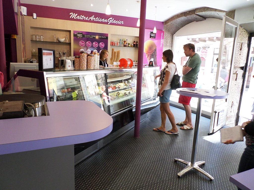 Rue des serruriers, la Compagnie des glaces n’est pas aussi connue que certaines de ses consœurs. Le magasin a ouvert il y a tout juste trois ans. Les glaces viennent des Alpes, où elles sont travaillées par un maître artisan glacier. Cette franchise contient plusieurs boutiques en France, dont une autre à Colmar. On y trouve quelques parfums originaux : crumble aux fruits rouges, whisky, mojito… Il faut compter 3,90€ pour deux boules de glace, et la chantilly est offerte.