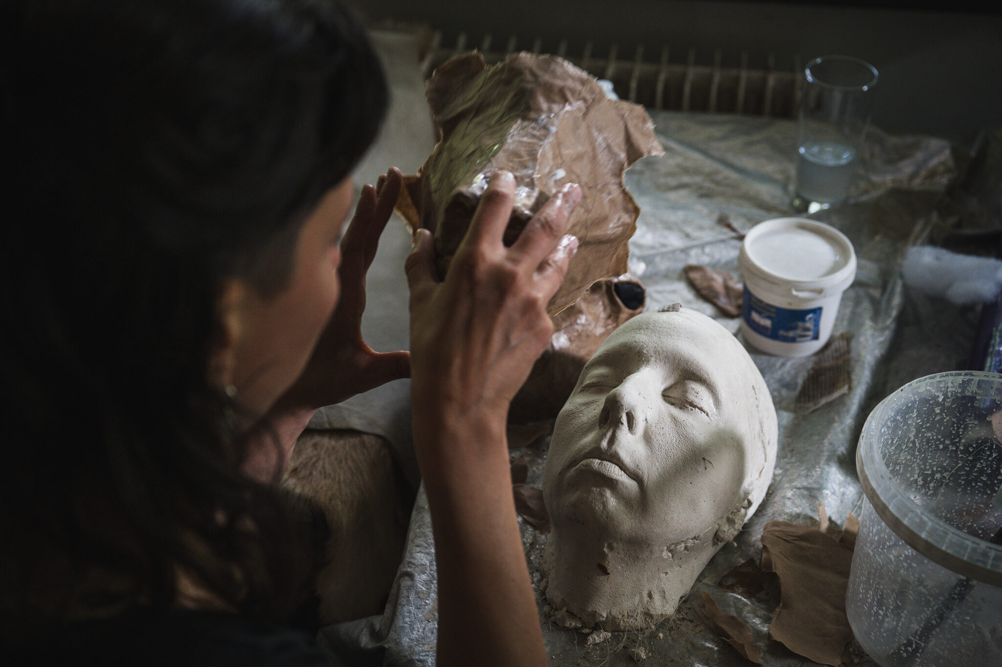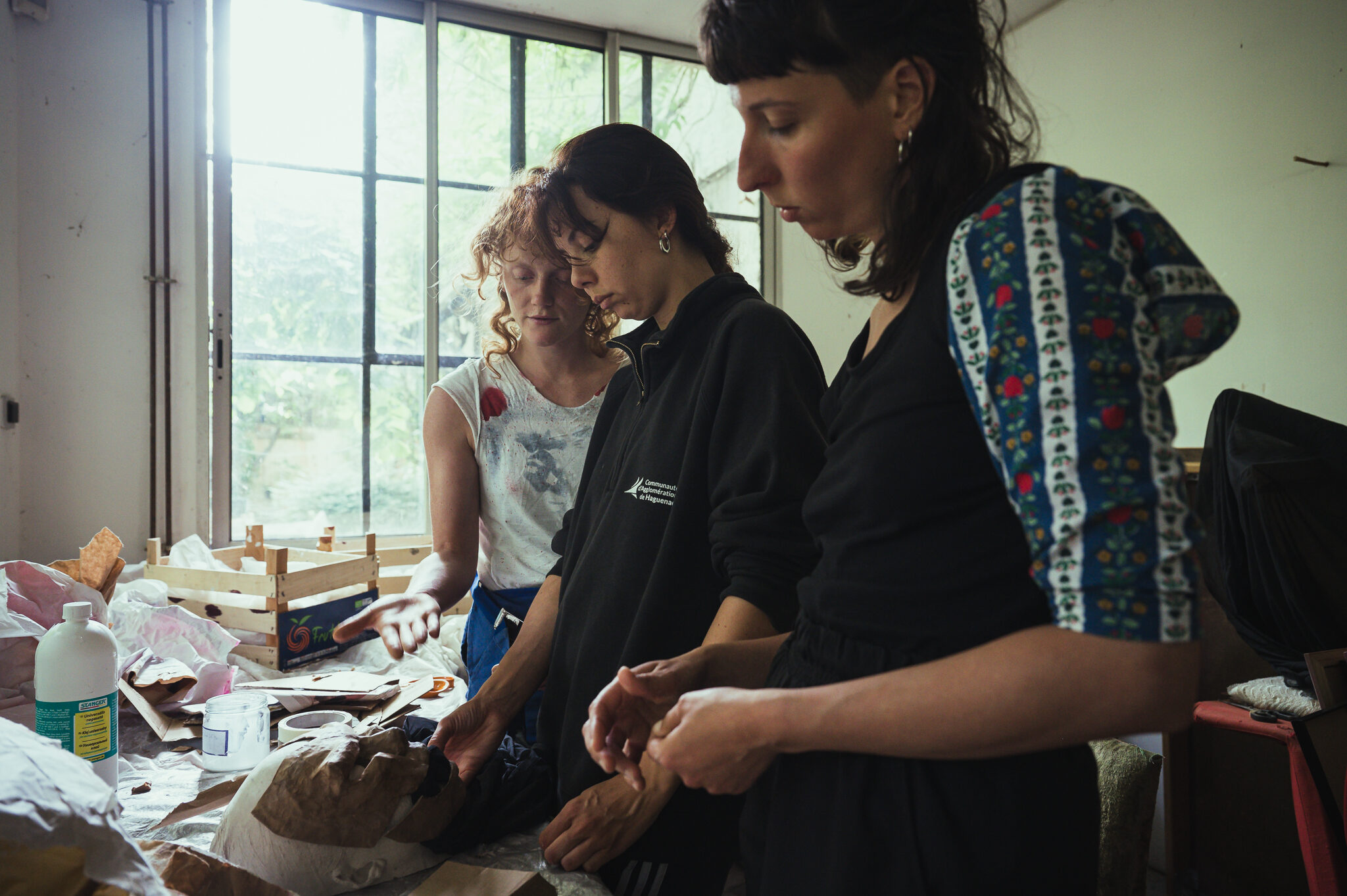 Installée dans un atelier au rez-de-chaussée, elle fabrique un masque pour une prochaine performance. Sans lever le nez de son ouvrage, Elsa reprend : « Ce côté très alternatif est plus adapté à ma façon de travailler. Dans des contextes institutionnels, on doit se plier à plus de contraintes. »