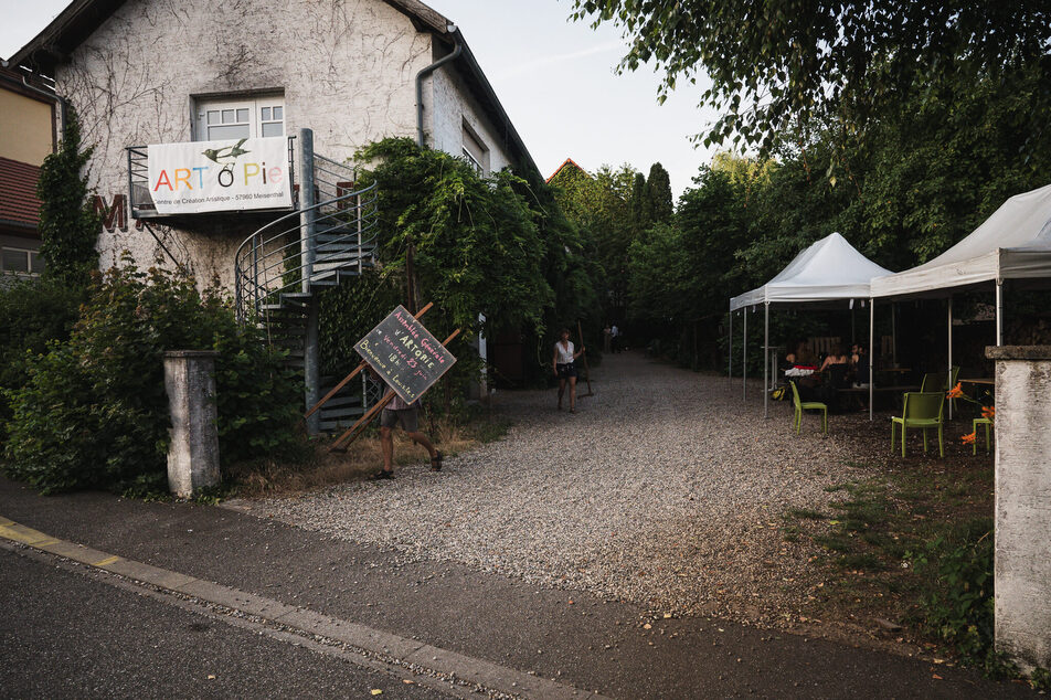 En descendant la route serpentant vers le centre, un bâtiment s’impose au regard : celui de l’ancienne verrerie fermée à la fin des années 1960. Il accueille aujourd’hui le Centre international d’art verrier (CIAV), dont les boules de Noël font la renommée de la commune, ainsi que la Halle verrière, une salle de concert connue dans toute la région. Au cœur du village, à l’ombre des hauts murs de cette immense halle, un bâtiment d’apparence insignifiant. Sur son mur, sept lettres colorées tranchent avec la verdure environnante : ARToPie.