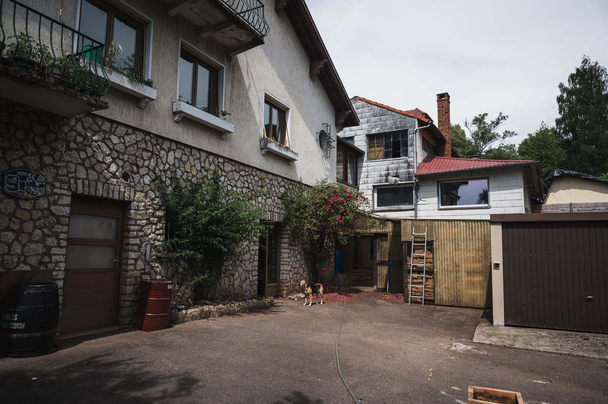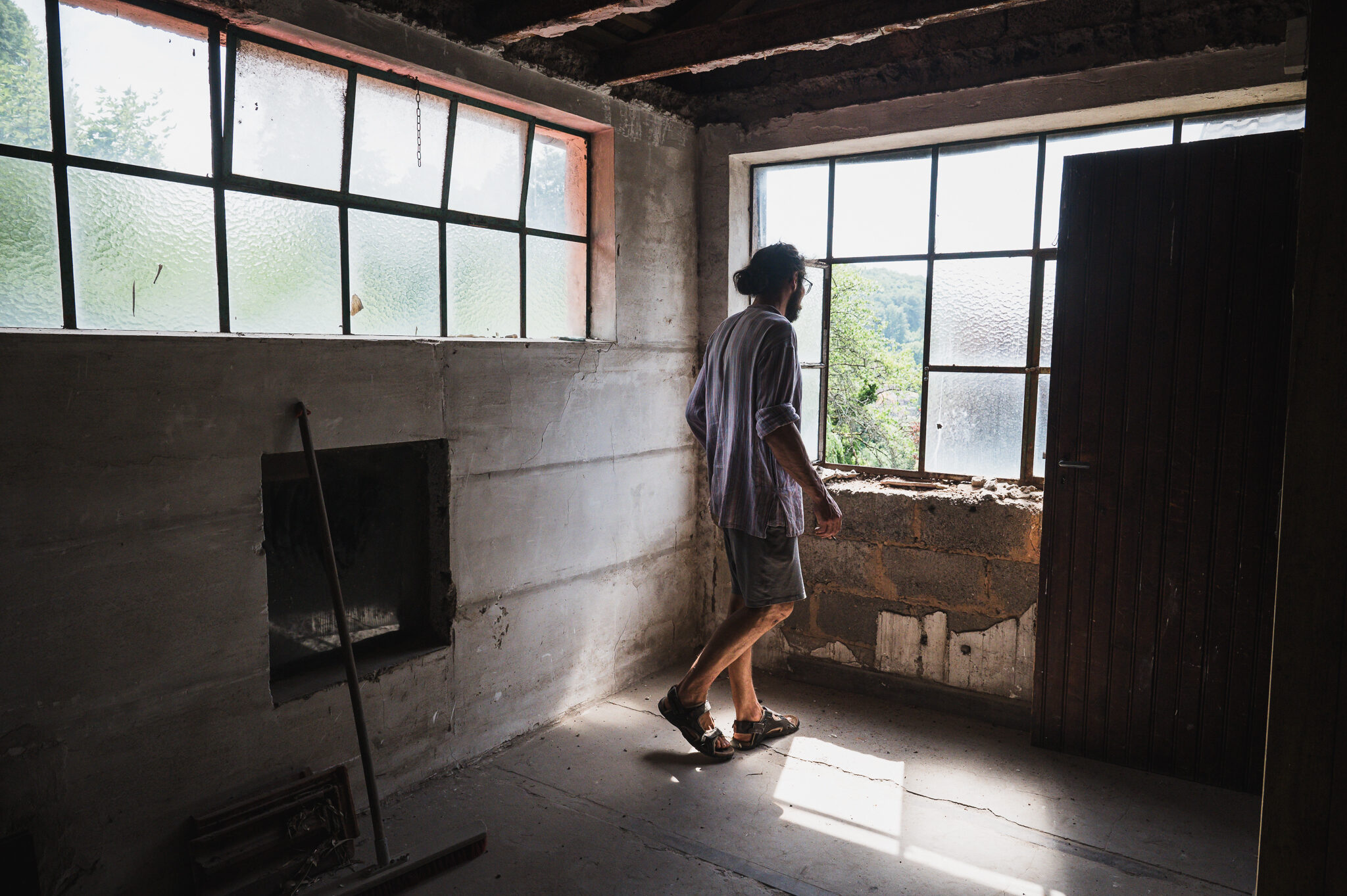 En 2021, douze personnes achètent collectivement l’ancienne miroiterie pour créer un lieu d’habitation et des ateliers d’artistes. La proximité avec ARToPie devient évidente quand Simon Perot nous ouvre la porte du chalet du Saupferch. « Ça faisait un moment que l’on rêvait de trouver un endroit pour installer nos ateliers de manière pérenne. » Si la partie habitation est terminée, il faut encore un peu d’imagination pour visualiser les futurs ateliers. « Ici, on va faire un labo de sérigraphie. Là, je vais installer mon four », détaille le verrier en serpentant entre les outils qui encombrent l’espace.