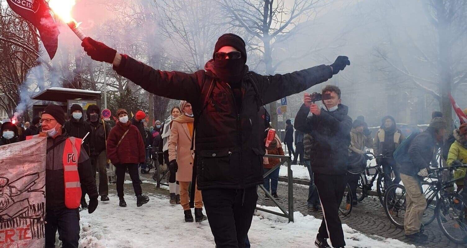 Après une suspension d’audience, le tribunal a condamné Mike Messager et Mathias C. à 13 mois d’emprisonnement ferme avec mandat d’arrêt à leur encontre. Ce dernier était aussi accusé d’avoir lancé une cannette en direction des policiers et d’avoir porté un coup de pied sur le bouclier de l’un d’eux lors de la manifestation du 16 janvier 2021. Il a été condamné en outre à verser 150 euros au titre du préjudice moral et 100 euros de dommages et intérêts à chacun des quatre policiers qui s’étaient portés partie civile.