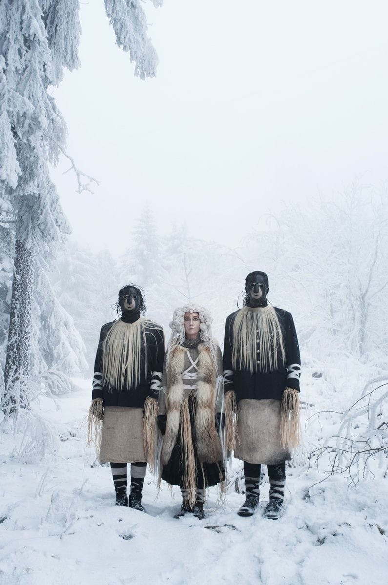 « On a fait appel à des figures mythologiques, mi-hommes, mi-bêtes pour Christophe et Francesco et moi en dame des neiges. Il était important pour nous de se transformer, ça fait partie de notre démarche artistique, de notre progression globale. Sur scène, je suis assez statique, la musique est assez méditative donc pour la vidéo, il fallait des images qui marquent. »