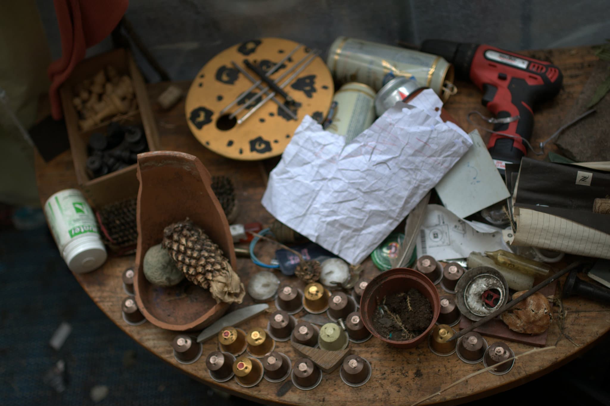 Michel collectionne, créé et conserve tous les objets qui lui passent sous la main. (Photo Tania Gisselbrecht / Rue89 Strasbourg)