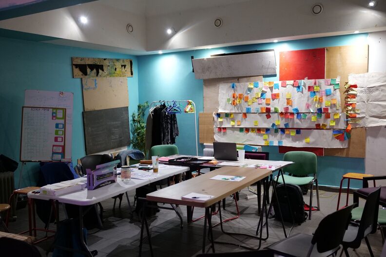 « Mais c’était vraiment compliqué l’hiver, pondère David, un membre de l’association qui vient de s’assoir sur une chaise, dos à une frise chronologique qui liste les actions sur autant de post-it :