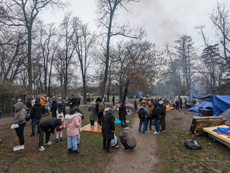 Peu après 14h30, une famille originaire de Géorgie quitte finalement le camp sans proposition de logement, mais avec une convocation à la préfecture, seulement une heure plus tard. Ce traitement différencié angoisse les parents, qui craignent que la préfecture ne leur propose qu’un retour dans leur pays d’origine ou la rue.