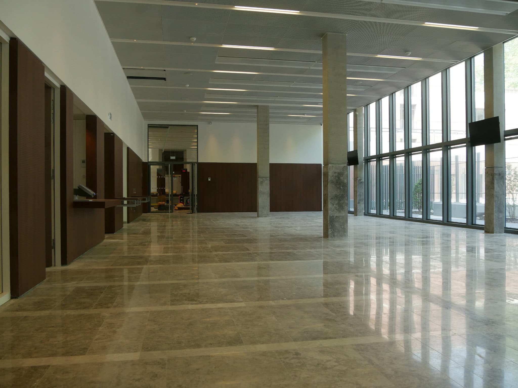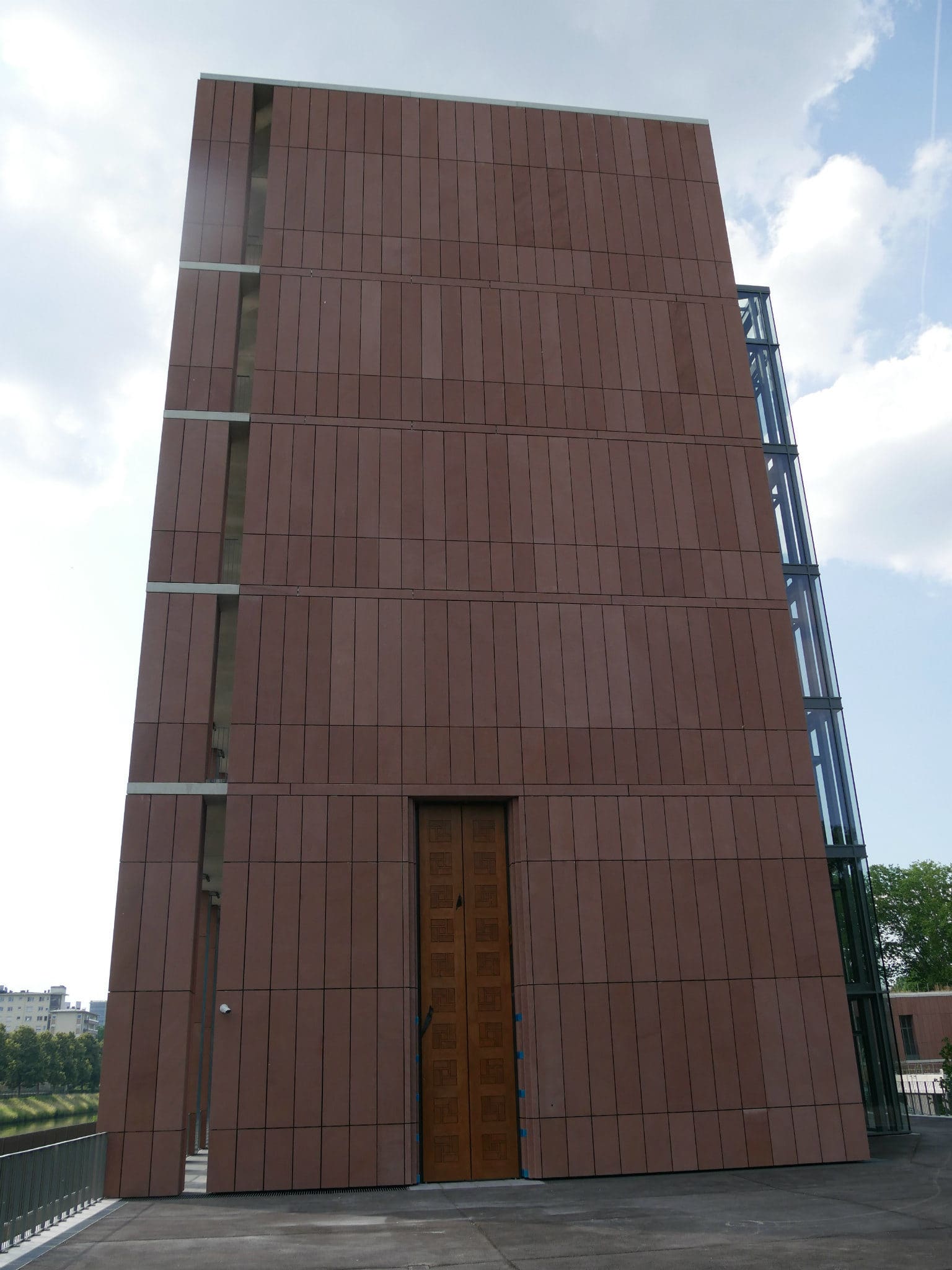 « On a dû obtenir une autorisation pour cette nouvelle façon de poser une façade en grès des Vosges. On a aussi dû faire des tests sismiques parce que c’est une configuration tout à fait unique. Les façades sont recouvertes de blocs qui font 800 kilos chacun. Toute cette phase a coûté très cher et nous a pris beaucoup de temps… »