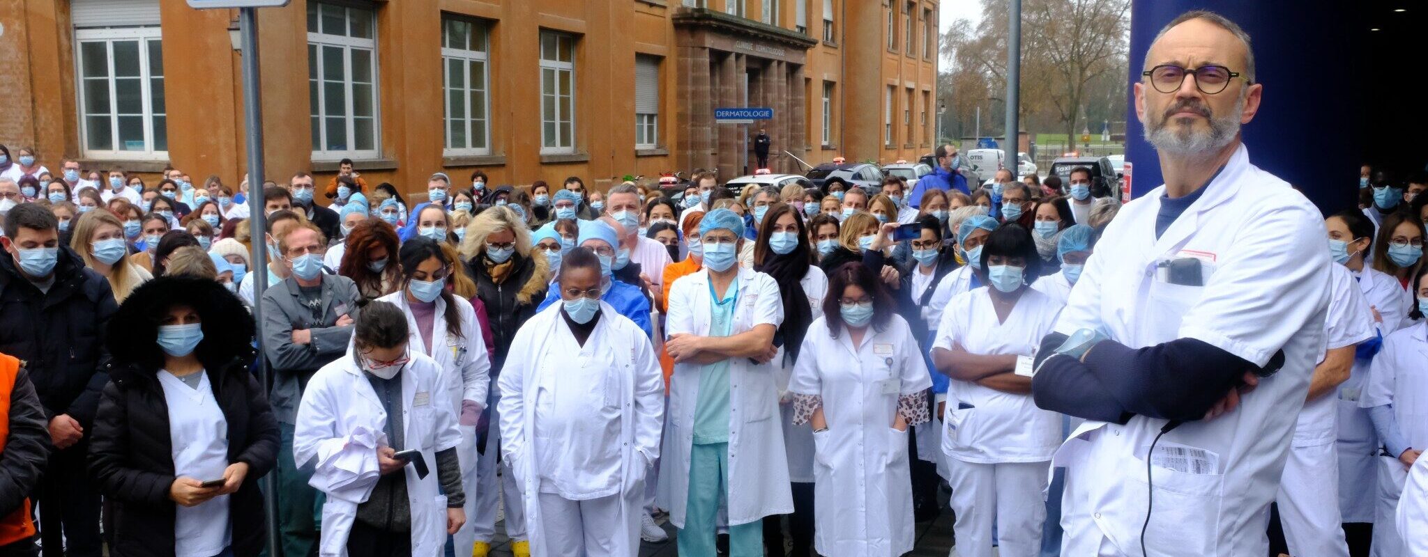 Rennes, La Rochelle, Lorient, Pau, Marseille, Paris, Colmar, Lille… Une quinzaine d’hôpitaux de toute la France observeront ce vendredi 7 janvier à 14 heures une minute de silence « pour la mort annoncée de l’hôpital public ». L’initiative est née à Strasbourg. Le 10 décembre 2021, sur Rue89 Strasbourg, des médecins strasbourgeois appelaient à participer à cette action pour mettre en lumière les difficultés inédites de l’hôpital public, liées à une « dégradation continue, au niveau du budget, des effectifs et des lits d’hospitalisation », comme l’expliquait le médecin des urgences du Nouvel Hôpital Civil, Sébastien Harscoat.