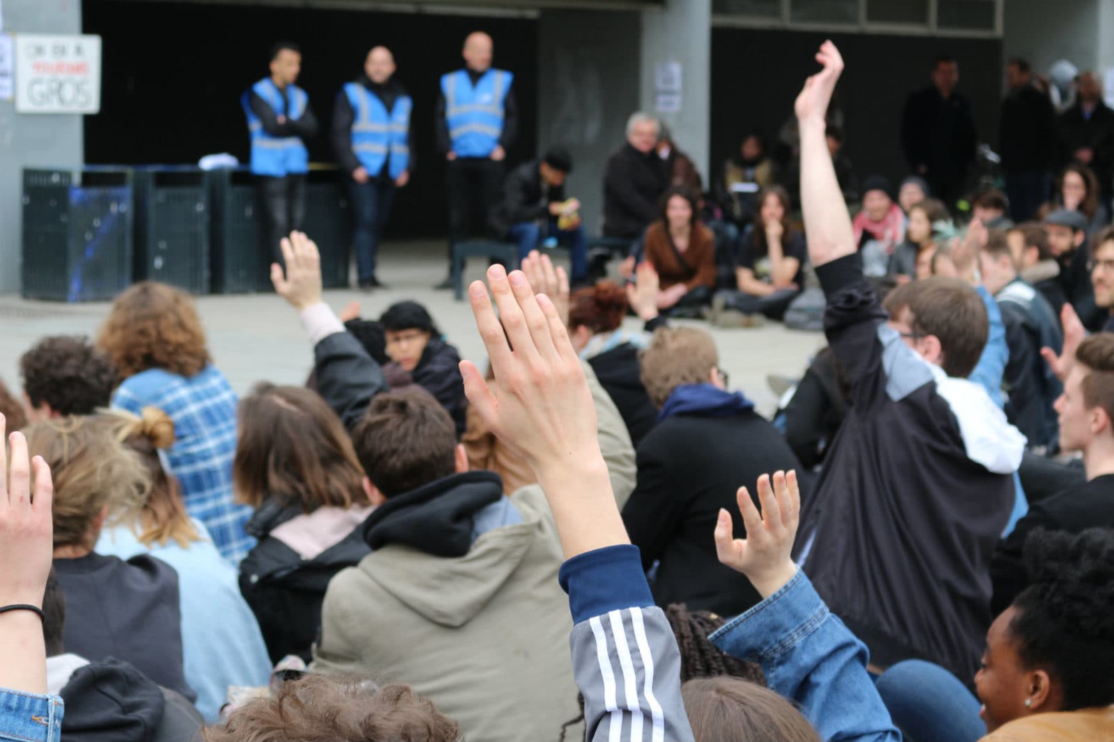 « Expliquez les arguments en faveur du vote pour et du vote contre ! » s’écrit lors d’une AG Jude Colin, 21 ans, à l’occasion du vote sur l’occupation de l’Elysée par les étudiants mobilisés de toutes les facultés françaises, il y a deux semaines. Ce à quoi la foule réagit par des cris : « Pas besoin, on a d’autres points à voter ! ». L’étudiant en première année de sciences politiques, jean et veste de survêtement, est membre de l’Unef. Il décrit l’influence parfois indirecte du syndicat étudiant dont il fait partie, au sein du mouvement :