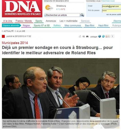 Alors que sur les réseaux sociaux, des élus socialistes affirment que le PS n’est pas à l’origine de ce sondage, les DNA évoquent la possibilité d’une consultation menée par la droite, en quête du meilleur candidat aux municipales de 2014 face à Roland Ries, maire sortant.