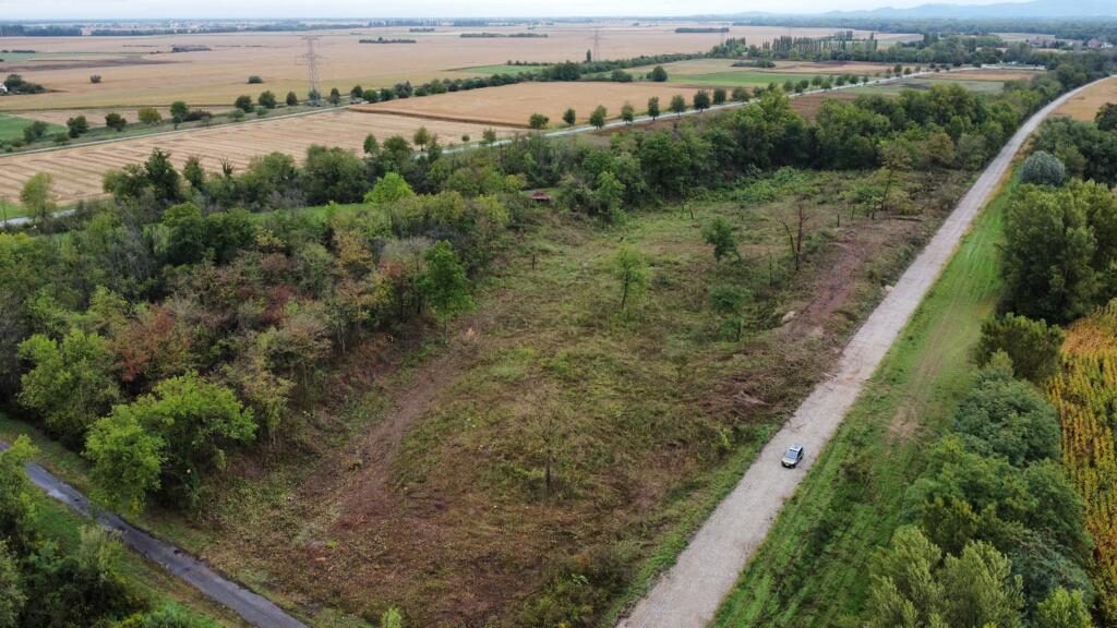 Claudia Harter fait partie du collectif des villageois réunis de Nambsheim, au sud de Neuf-Brisach, créé à l’été 2021 pour s’opposer à un projet de zone industrielle appelée EcoRhena. « Il veulent raser 10 hectares de forêt et artificialiser des zones agricoles mais ils ne savent même pas encore quelles entreprises vont s’installer », résume t-elle. Les arbres que les habitants de la rue du canal aperçoivent depuis les fenêtres de leurs maisons pourraient être remplacés d’ici peu par des usines et des entrepôts. Ils devraient s’étaler sur 55 hectares, soit l’équivalent de la surface de 76 terrains de foot.