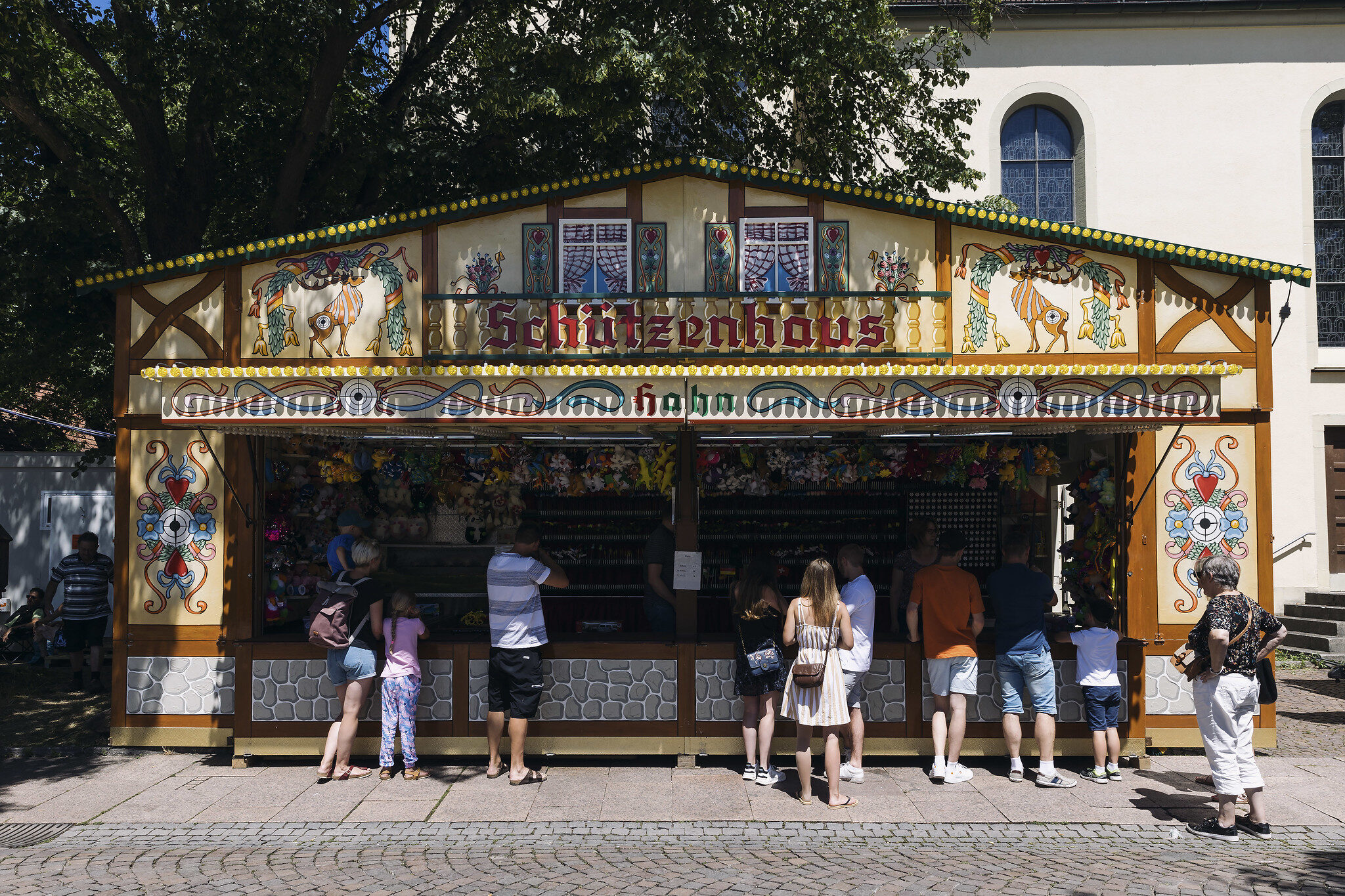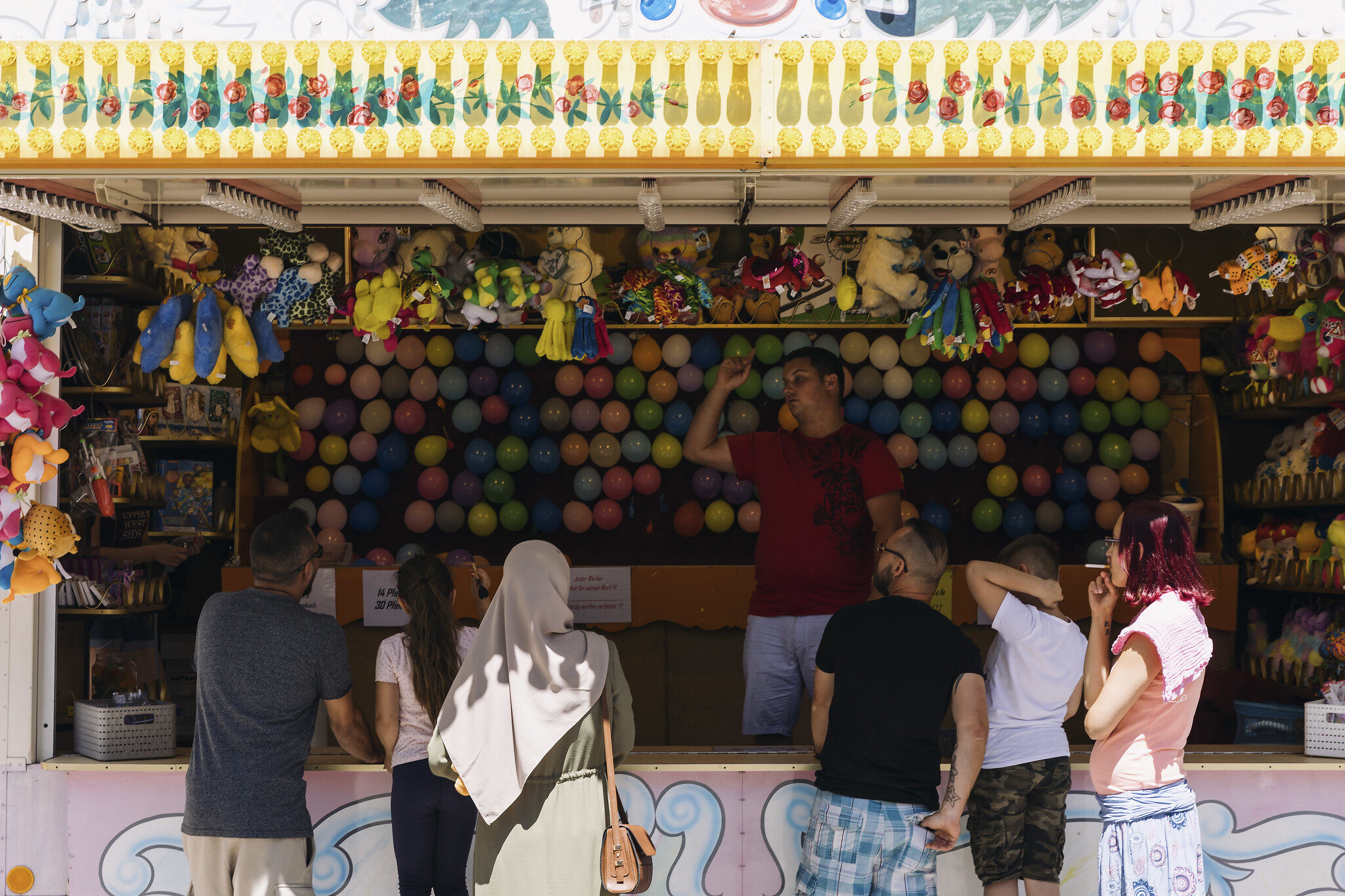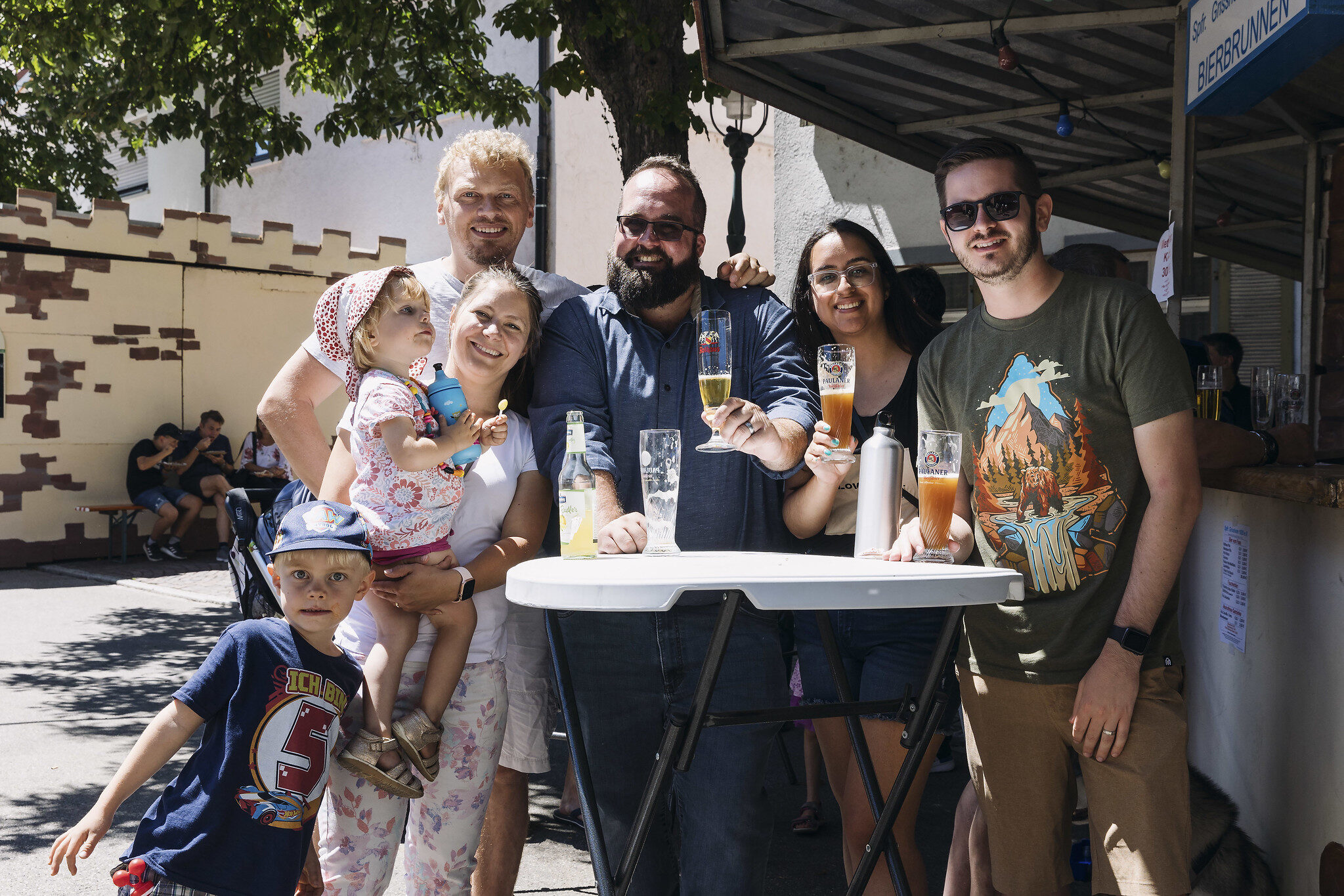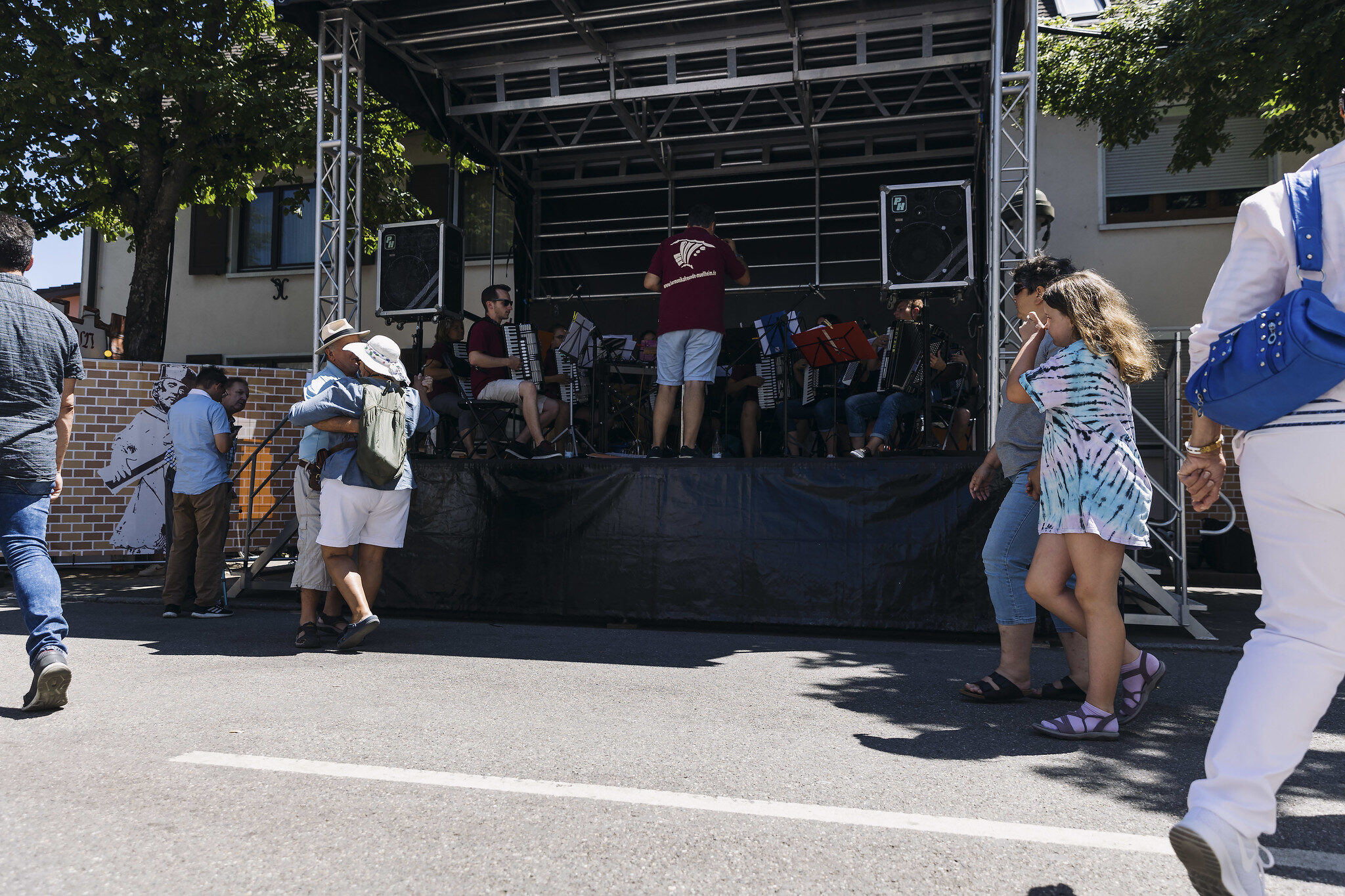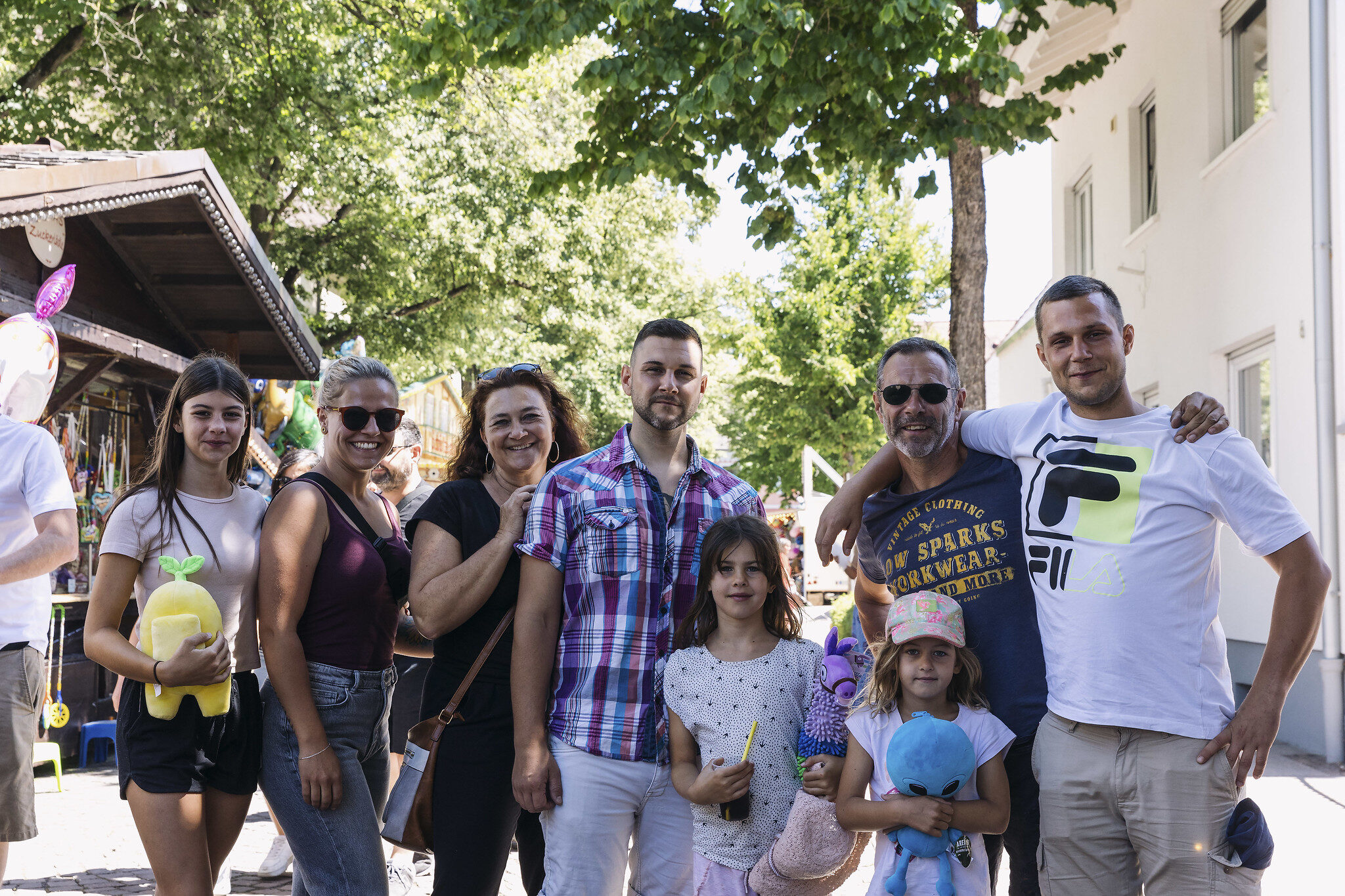Parmi le public, il y a Brigitte, suissesse exilée dans le pays de Bade, Ecki, et leurs fils Adrian et Roman. Il y a aussi Anna, la petite amie de Roman, et Cecilia, Milena et Amy, les petites-filles. Brigitte vient toujours à la Nepomukfest parce qu’elle aime y « croiser des connaissances » qu’elle n’a « pas l’occasion de voir par ailleurs ». Granités en main, toute la petite famille défend l’événement quand on s’étonne de l’absence de grande roue : « il y a quand même les stands forains, le tir à la carabine, les fléchettes… », pointe Brigitte.