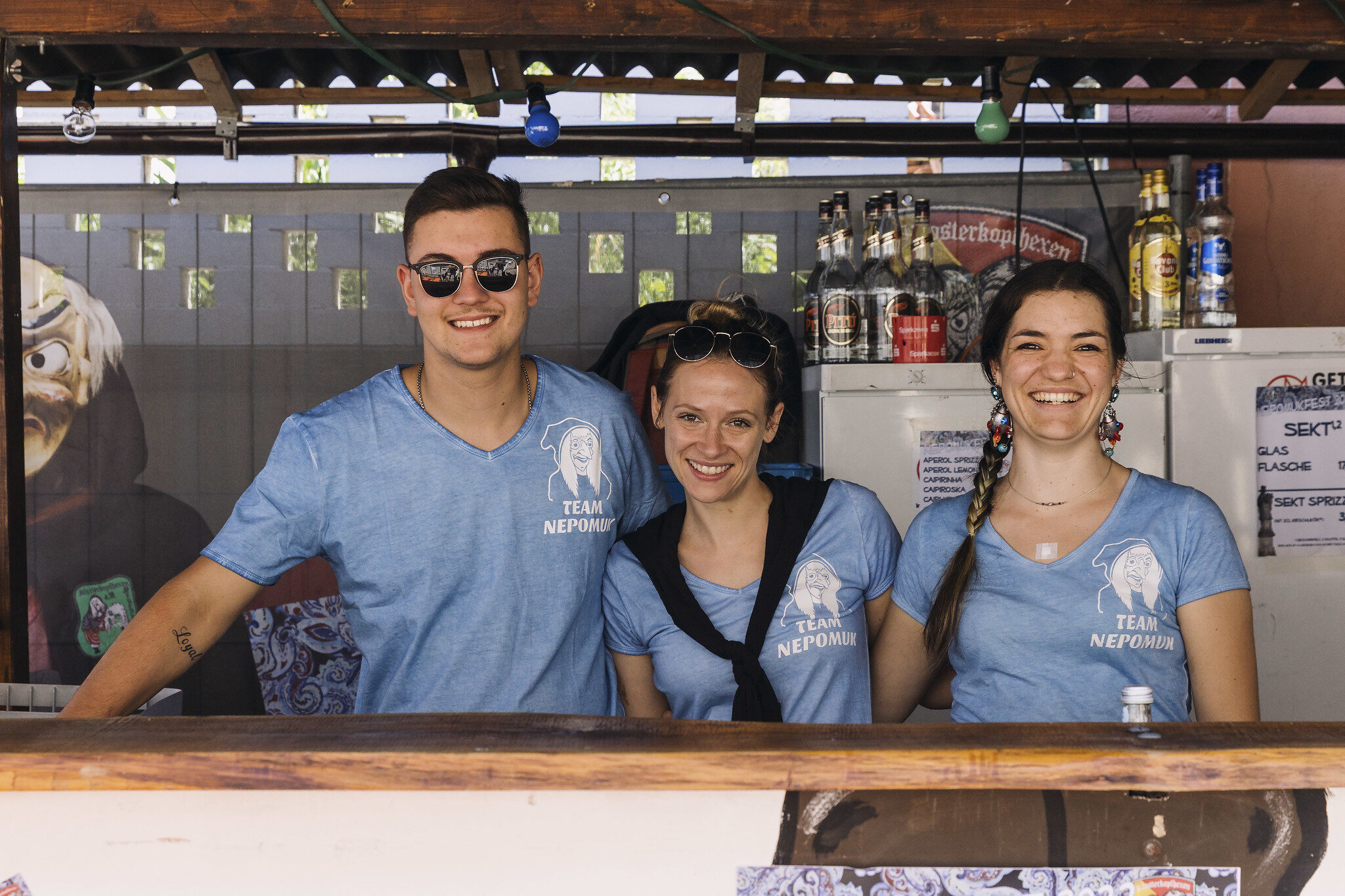 Accoudé à une table en hauteur, chacun une bière en main, Ty, Lexes et Joey viennent tout droit de l’Indiana (« en plein milieu des États-Unis », précise Joey pour nous situer). Ty blague sur sa présence ici : « Je suis venu il y a trois ans, et quand j’ai entendu que la Nepomuk revenait en 2022, j’ai sauté dans un avion pour y retourner ! ». Ce grand gaillard barbu aux verres solaires dit à moitié vrai : il avait vraiment apprécié la fête en 2019, mais il est revenu pour le travail.