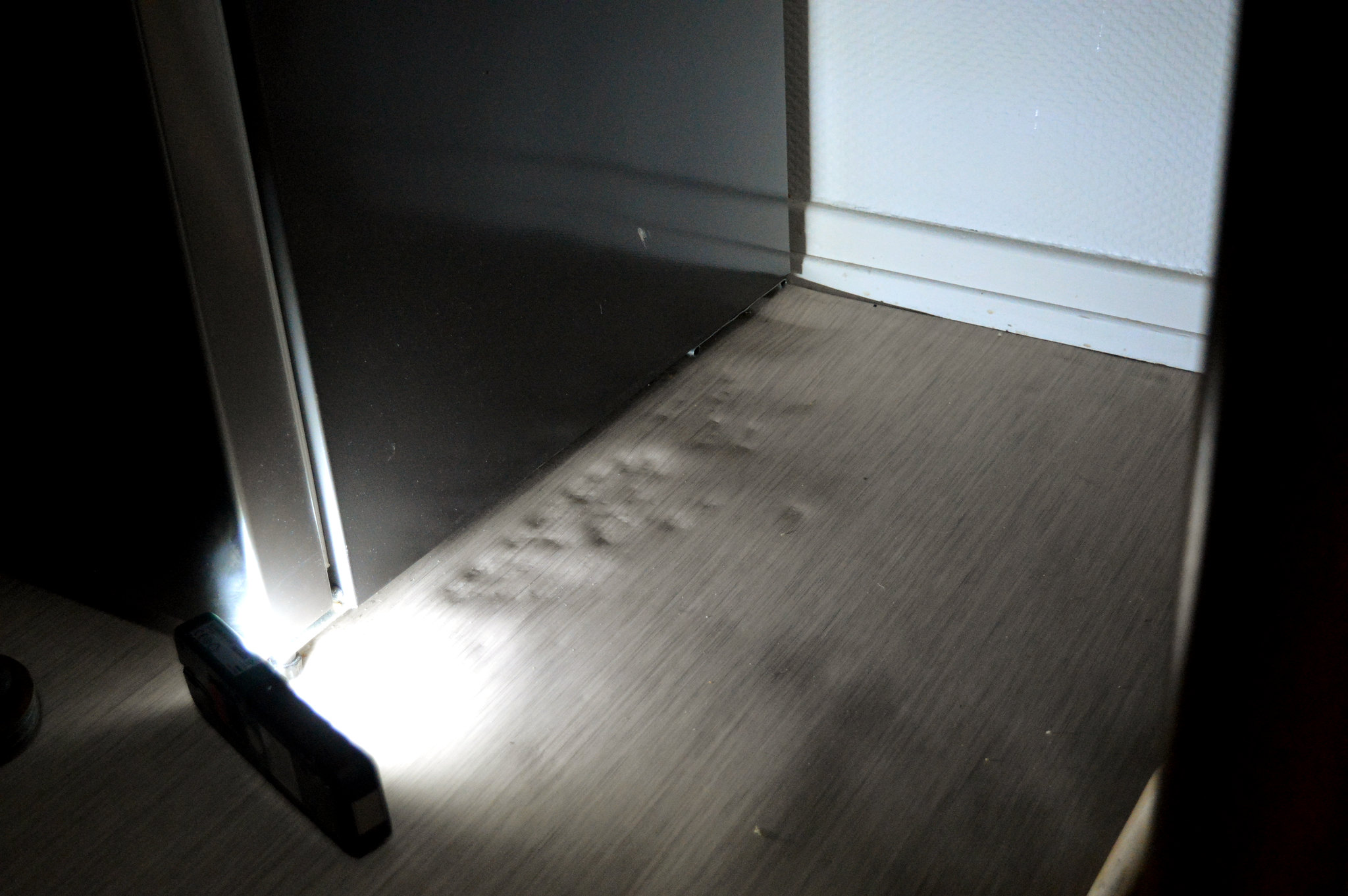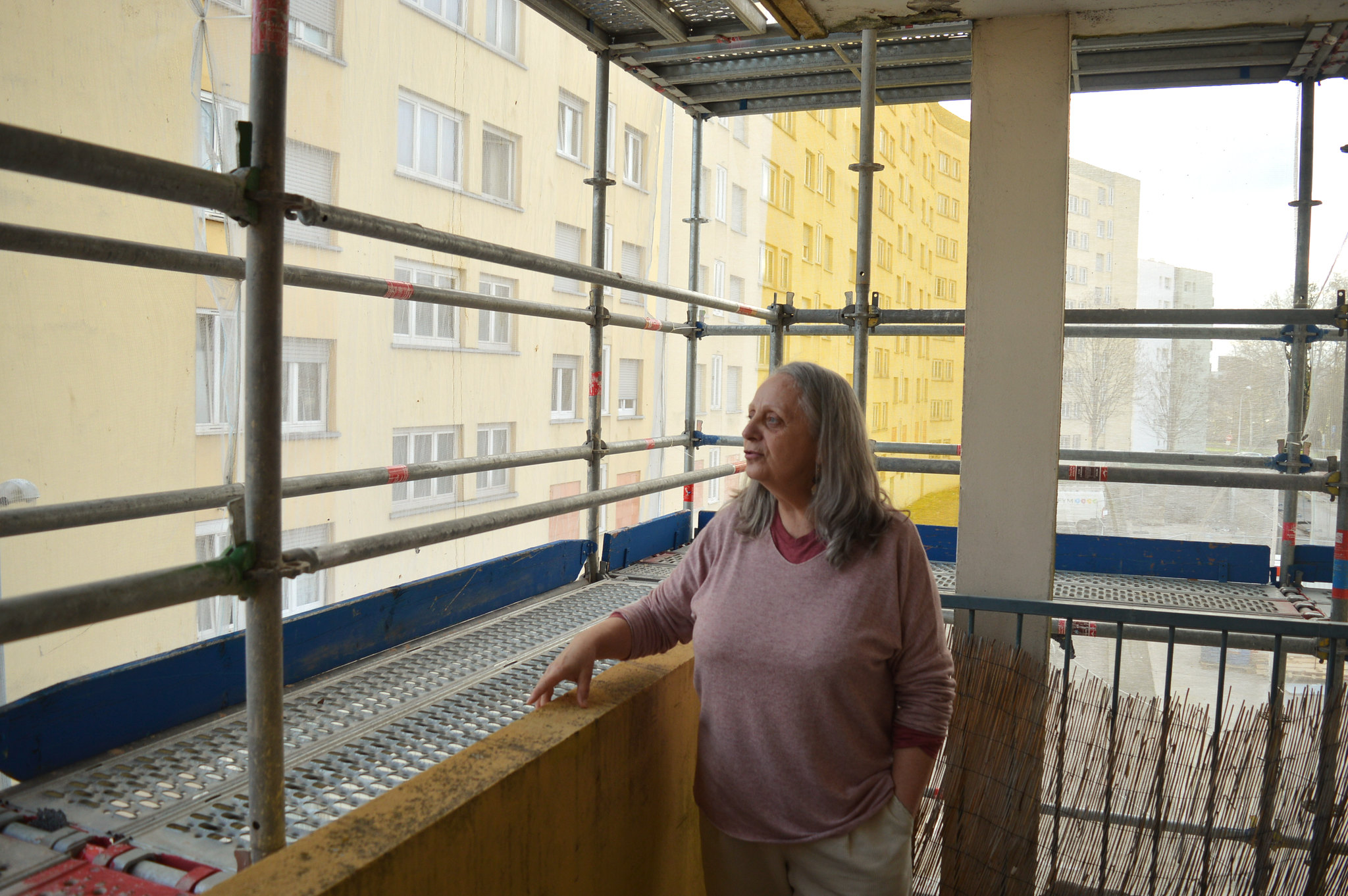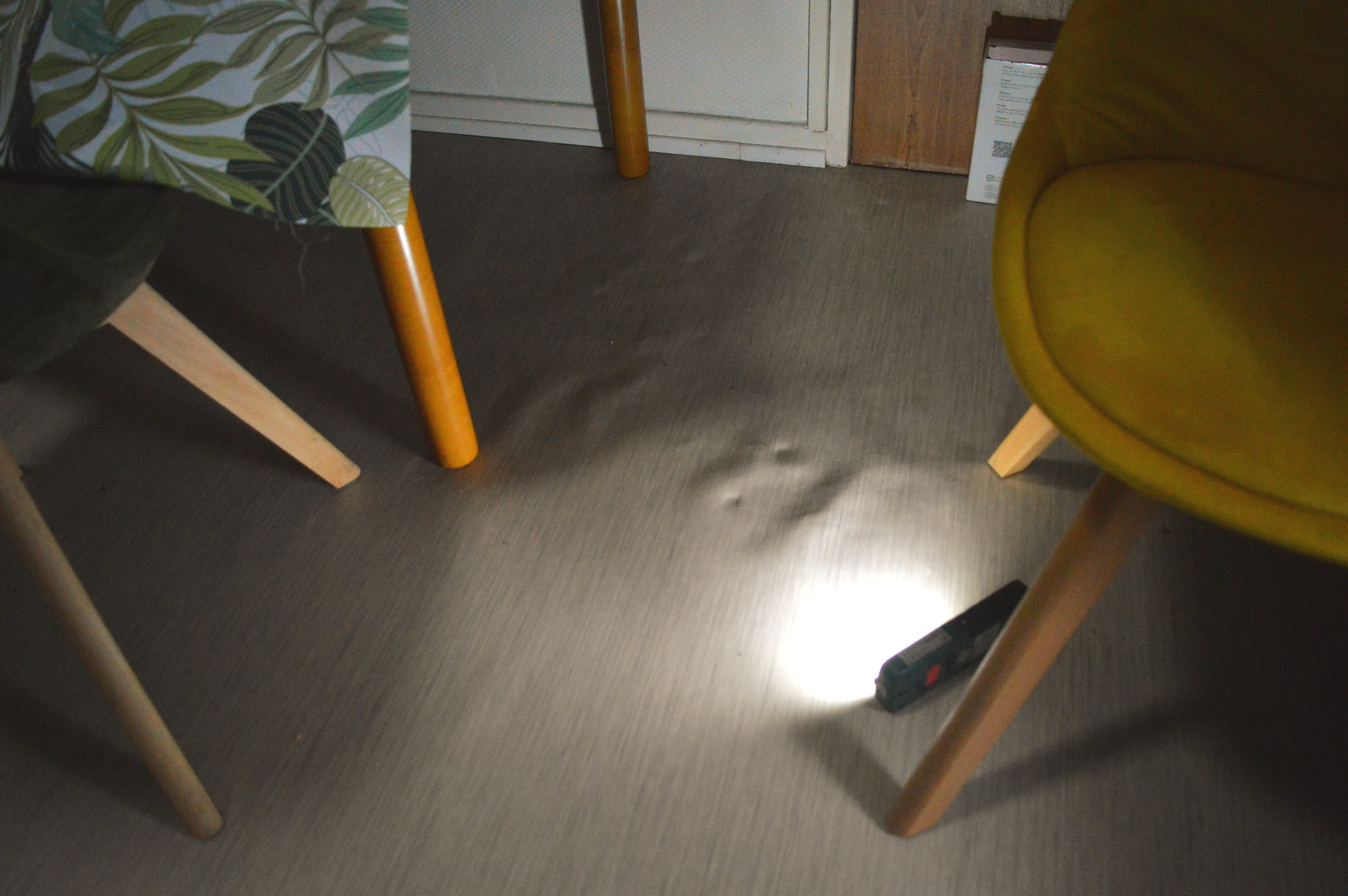Djamel pose son téléphone sur le sol, la lampe torche activée, pour mieux dévoiler les ondulations du lino posé en octobre 2022 dans sa cuisine. Des impacts apparaissent par endroits. « C’est pire que du bas de gamme », résume l’habitant du Neuhof, dépité : « Là, ils ont même oublié une vis ou un cailloux en dessous », constate t-il, en passant son doigt sur le revêtement. Son appartement, qu’il loue au bailleur social Habitation Moderne, fait partie des 330 logements rénovés par Bouygues rue de Mâcon, pour 23 millions d’euros.
