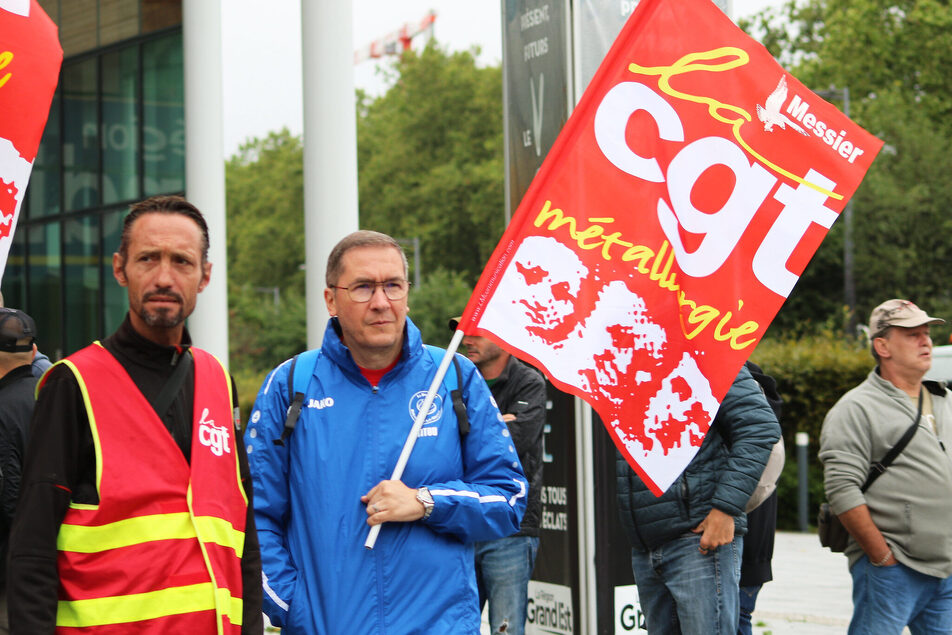 Les drapeaux écarlates de la CGT métallurgie flottent au gré du vent et contrastent avec le ciel gris de ce mardi 1er août. La pluie battante n’a pas entamé la détermination des ouvriers de Clestra, en grève depuis le 3 juillet. Abrités sous quelques parapluies, une soixantaine de salariés de l’entreprise de cloisons pour bureaux manifestent devant le conseil régional du Grand Est à Strasbourg. Les employés dénoncent l’absence de dialogue avec la nouvelle direction de l’entreprise, soupçonnée de mener un plan social déguisé. À l’intérieur, le représentant syndical CGT Amar Ladraa est reçu par le directeur général adjoint de la région Grand Est, François Charlier.