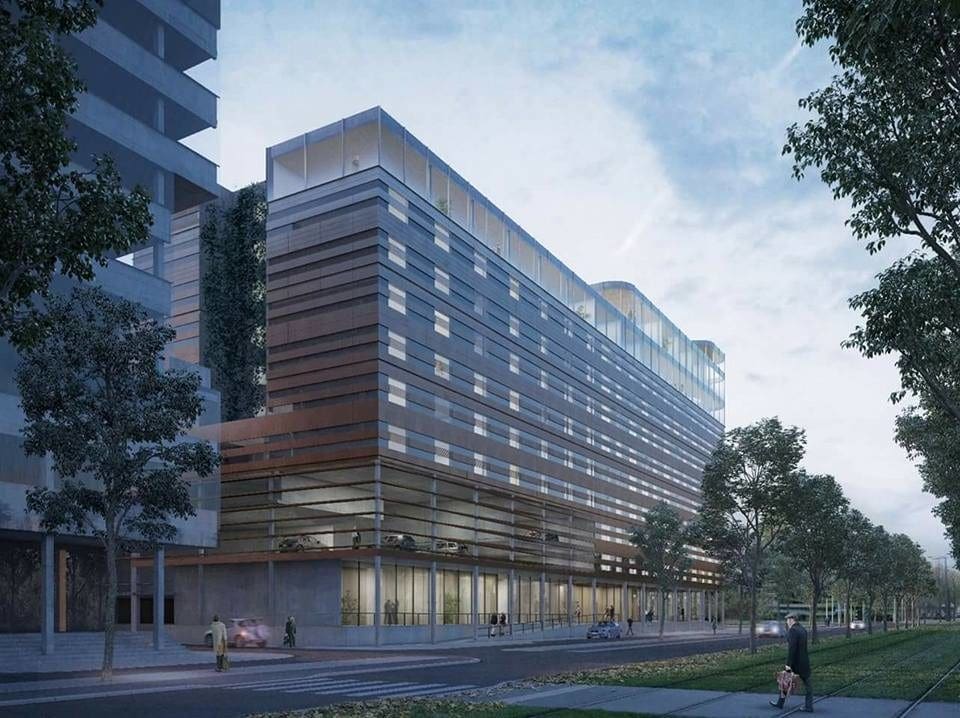 Un des immeubles de bureaux remplacera l’entrée du parc des expositions et du théâtre du Maillon, en conservant en partie la façade historique place Adrien Zeller. Dans la partie hôtelière, avec visiblement de grandes baies vitrées à son sommet, un parking public en étages sera intégré (350 places).