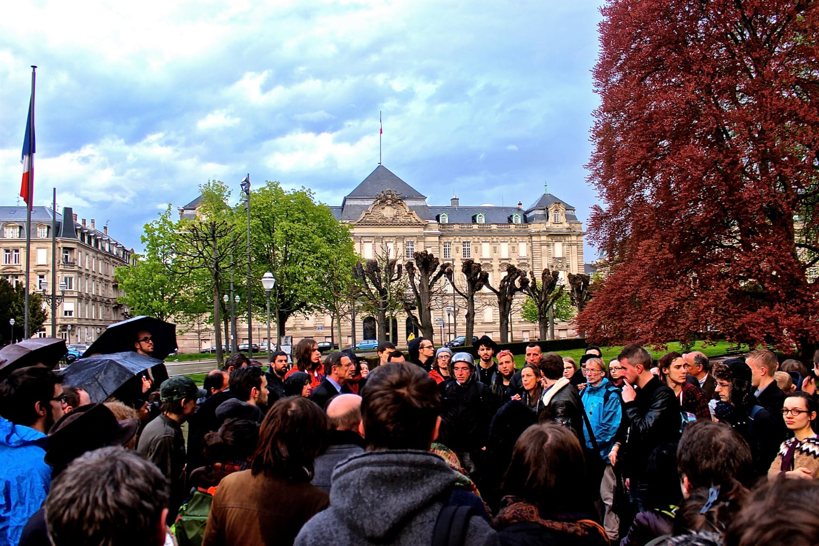 Partis 300, ils ne sont plus qu’une poignée. Après plus de 40 assemblées générales et 80 jours de rencontres, de discussions, il ne reste plus beaucoup de membres actifs qui se reconnaissent dans « Nuit Debout » à Strasbourg, mouvement créé à Paris après la manifestation contre la « loi travail » du 31 mars. Mardi soir, quelques-uns d’entre eux se trouvaient place Broglie.