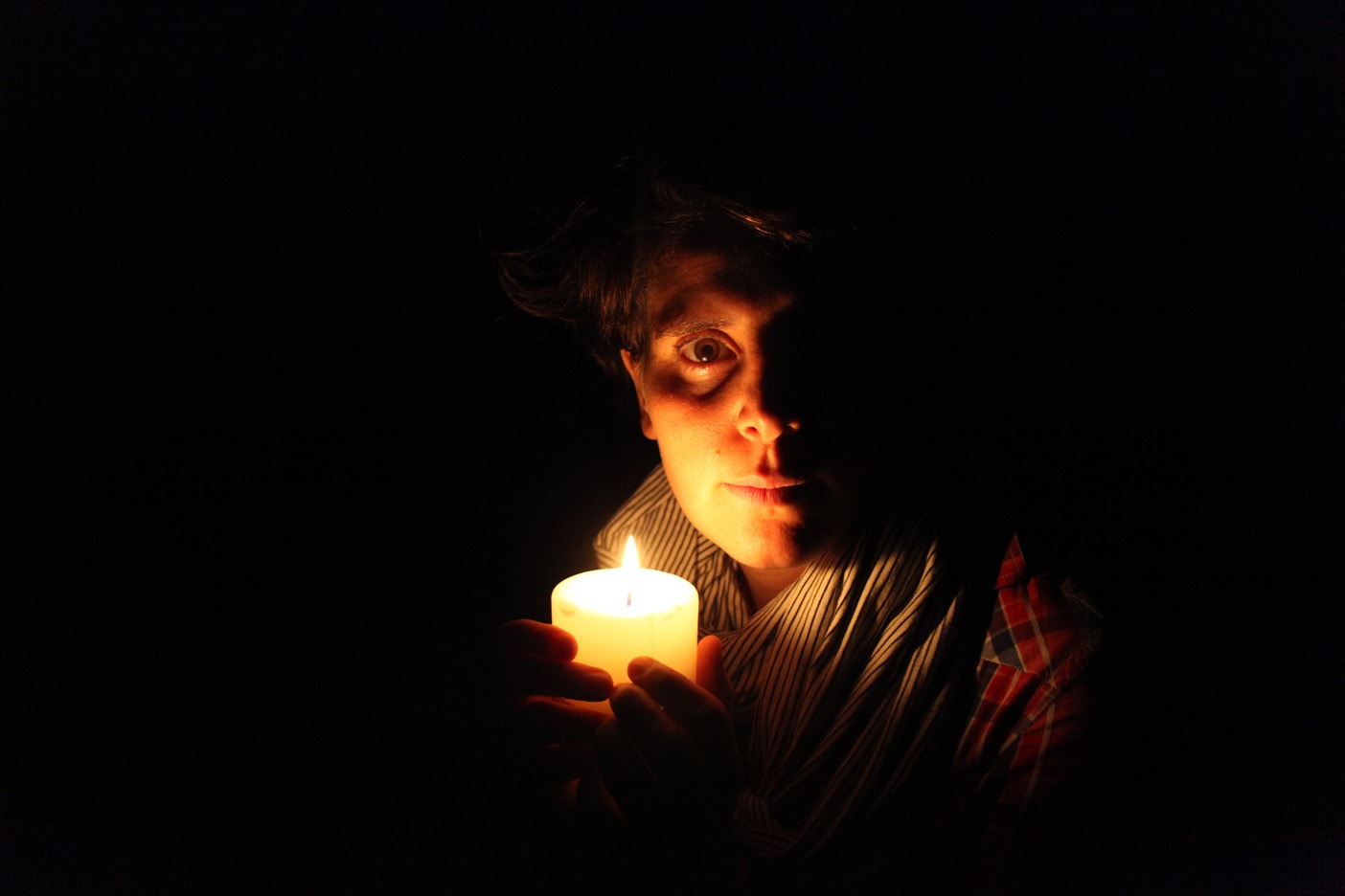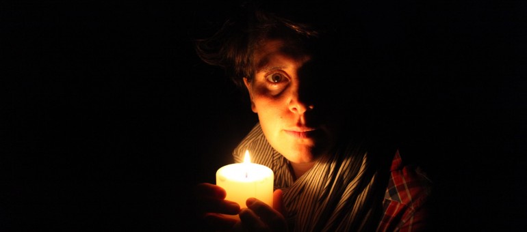 La nuit tombe sur le village fantôme. Nous passons la nuit dans l’église, à la bougie.