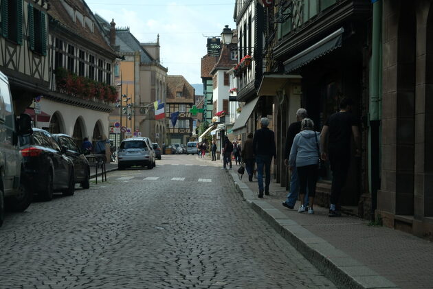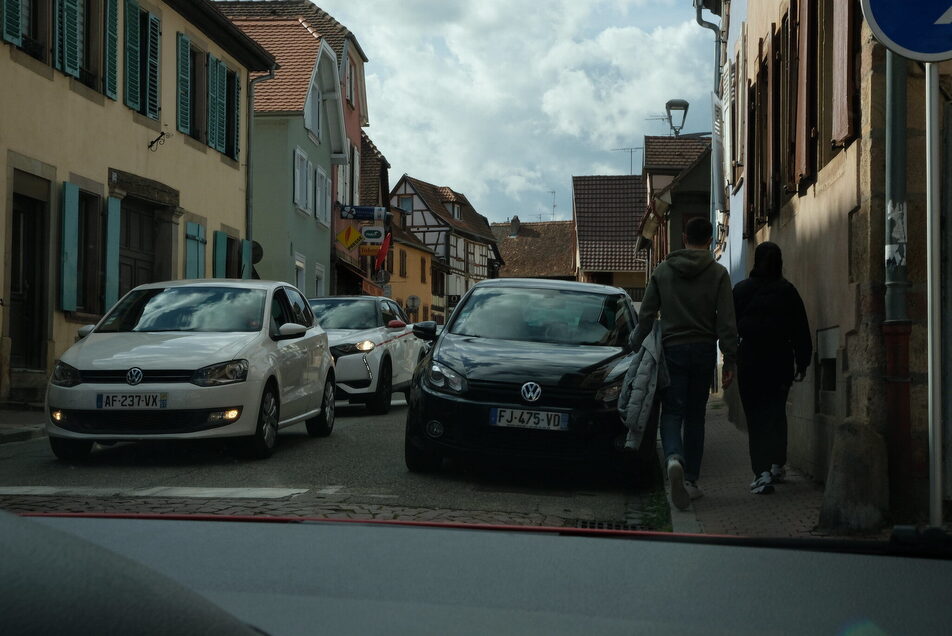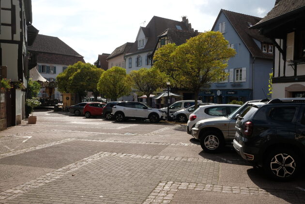 Le bilan de l’association Vél’Obernai évoque aussi « un centre-ville oublié » alors que « les rues sont étroites et une grande partie de l’espace est stérilisé par le stationnement ». Au cœur d’Obernai en effet, la voiture semble reine, malgré les dénégations du maire de la commune. Certains trottoirs ne permettent même pas à une seule personne de circuler. D’autres sont impraticables aux poussettes ou aux déambulateurs. À ces mêmes endroits, les voitures disposent d’une large voie de circulation et de places de stationnement… alors que les bâtiments historiques et patrimoniaux affleurent partout.