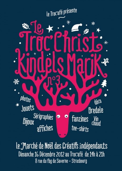 Pour ceux qui sont à la bourre sur leurs cadeaux de Noël, et qui apprécient les objets uniques, le Troc’afé organise le rendez-vous de la dernière chance dimanche, un Trockindelsmarik. Ce micro-marché de Noël de créateurs d’objets promet des t-shirts sérigraphiés, des bijoux en série limitée, des boules de Noël uniques, etc. Vin chaud et mix …