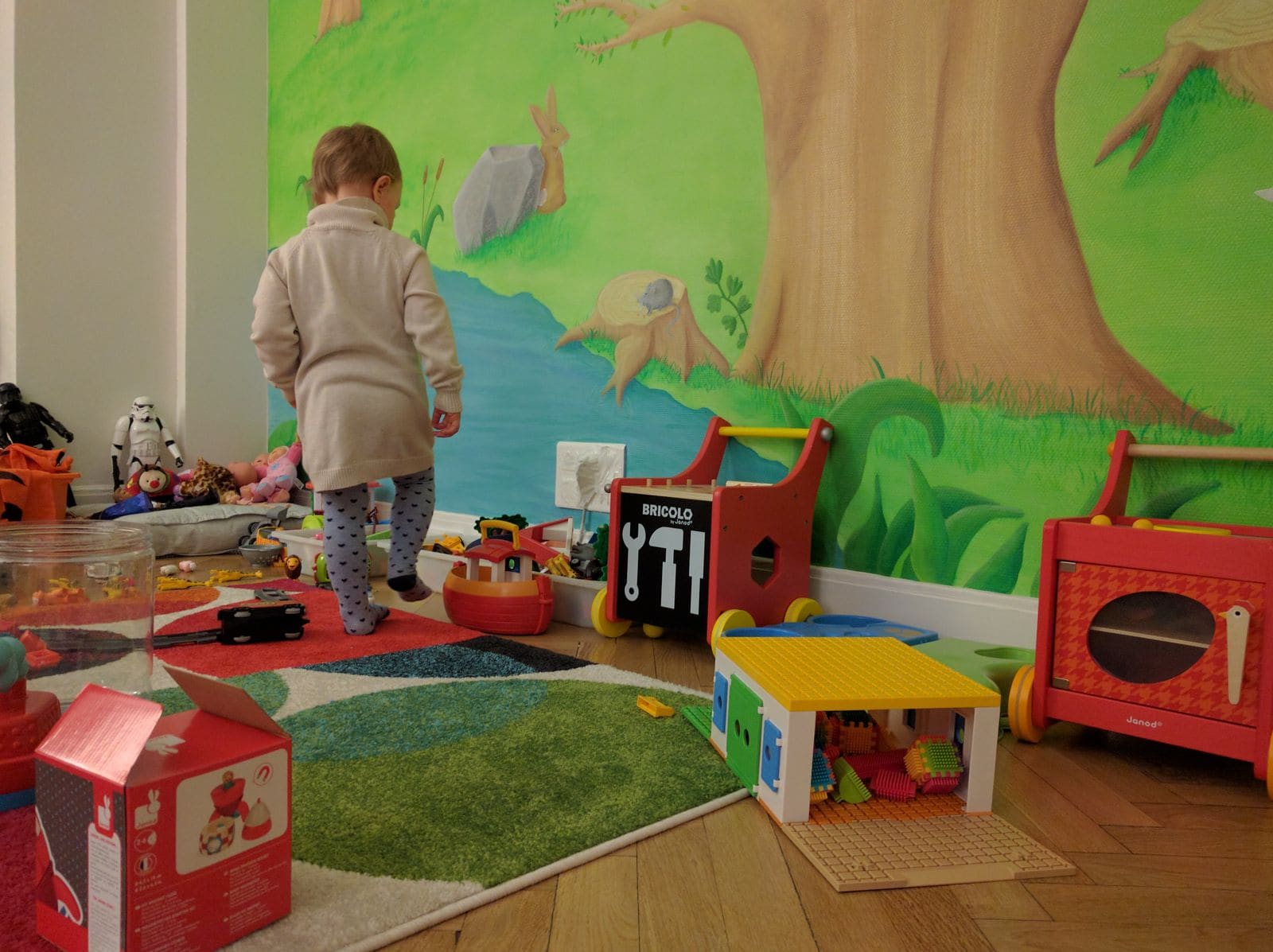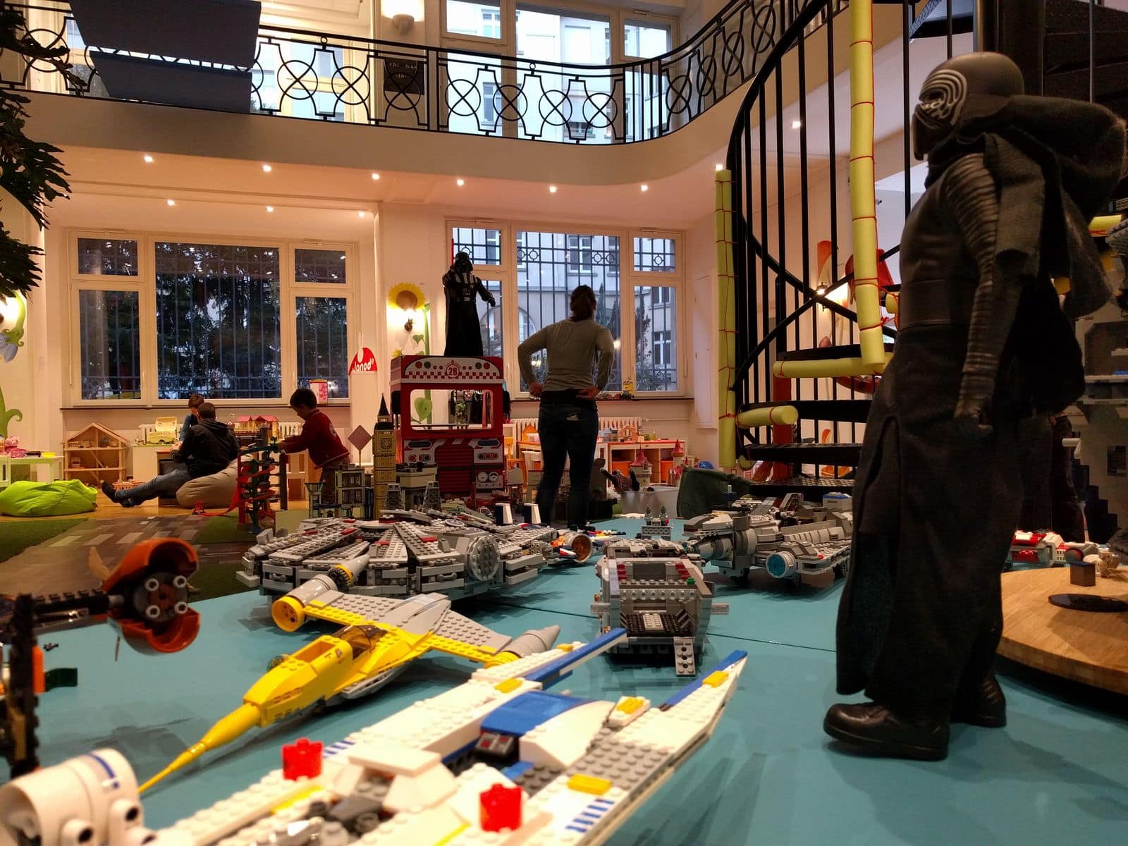 Pas besoin d’expliquer longtemps le concept ceci dit. Une fois leurs chaussures enlevées, mon fils, 5 ans, et sa soeur de 3 ans se sont rués sur les centaines de jouets immédiatement disponibles. C’est le château tout rose Playmobil qui a attiré ma fille en premier, elle a pu se raconter une drôle d’histoire de princesses et de dragons. Son frère, lui, a repéré l’immense garage à petites voitures et son circuit, dont la taille prendrait la moitié de la surface de sa chambre. Quelques minutes plus tard, ils ont oublié leurs parents et se sont retrouvés au garage, où ils partagent des voitures miniatures avec d’autres enfants…