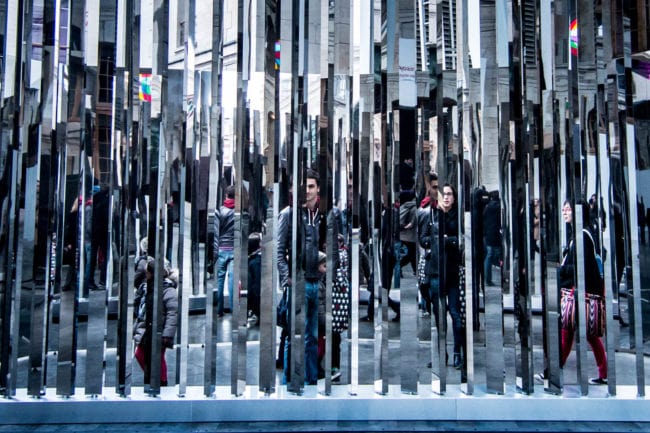 Les oeuvres sont exposées partout sur le site de la Coop : à l’intérieur, mais aussi sur les façades et à l’extérieur. Beaucoup d’artistes jouent sur la perception des espaces, des mouvements. Les miroirs de l’oeuvre Trame d’Etienne Rey jouent avec la façon dont l’espace se structure, Daydream de Nonotak Studio donne l’illusion d’un tunnel infini, grâce à quatre écrans posés côte à côte…