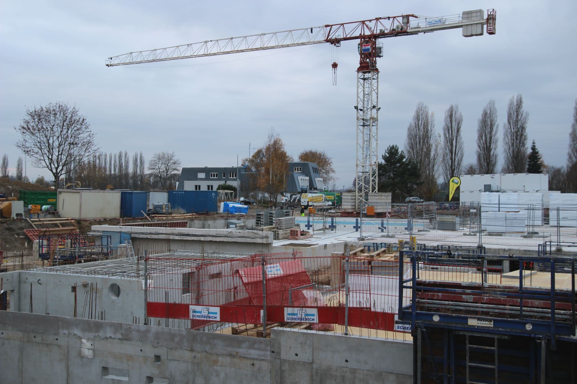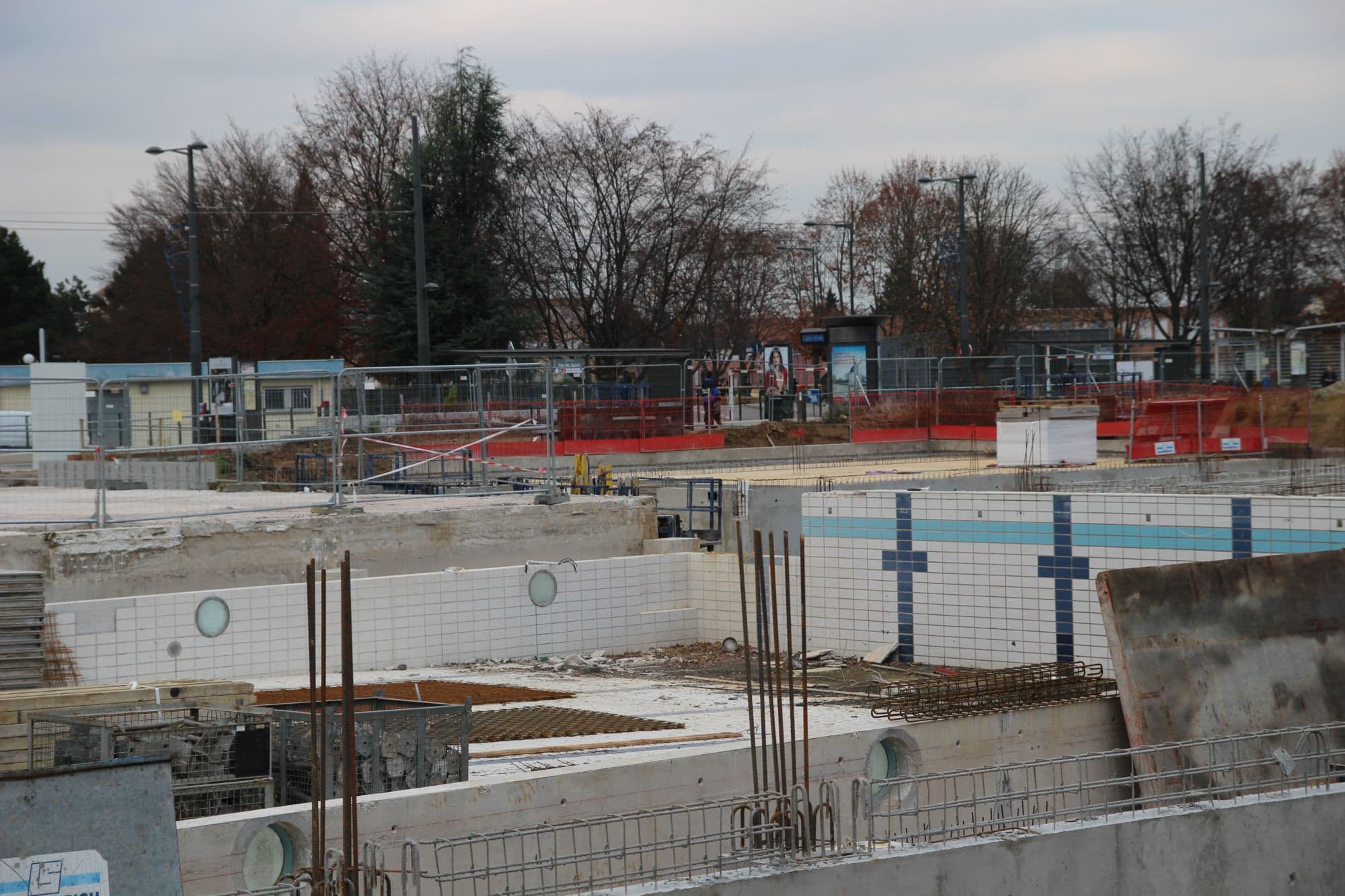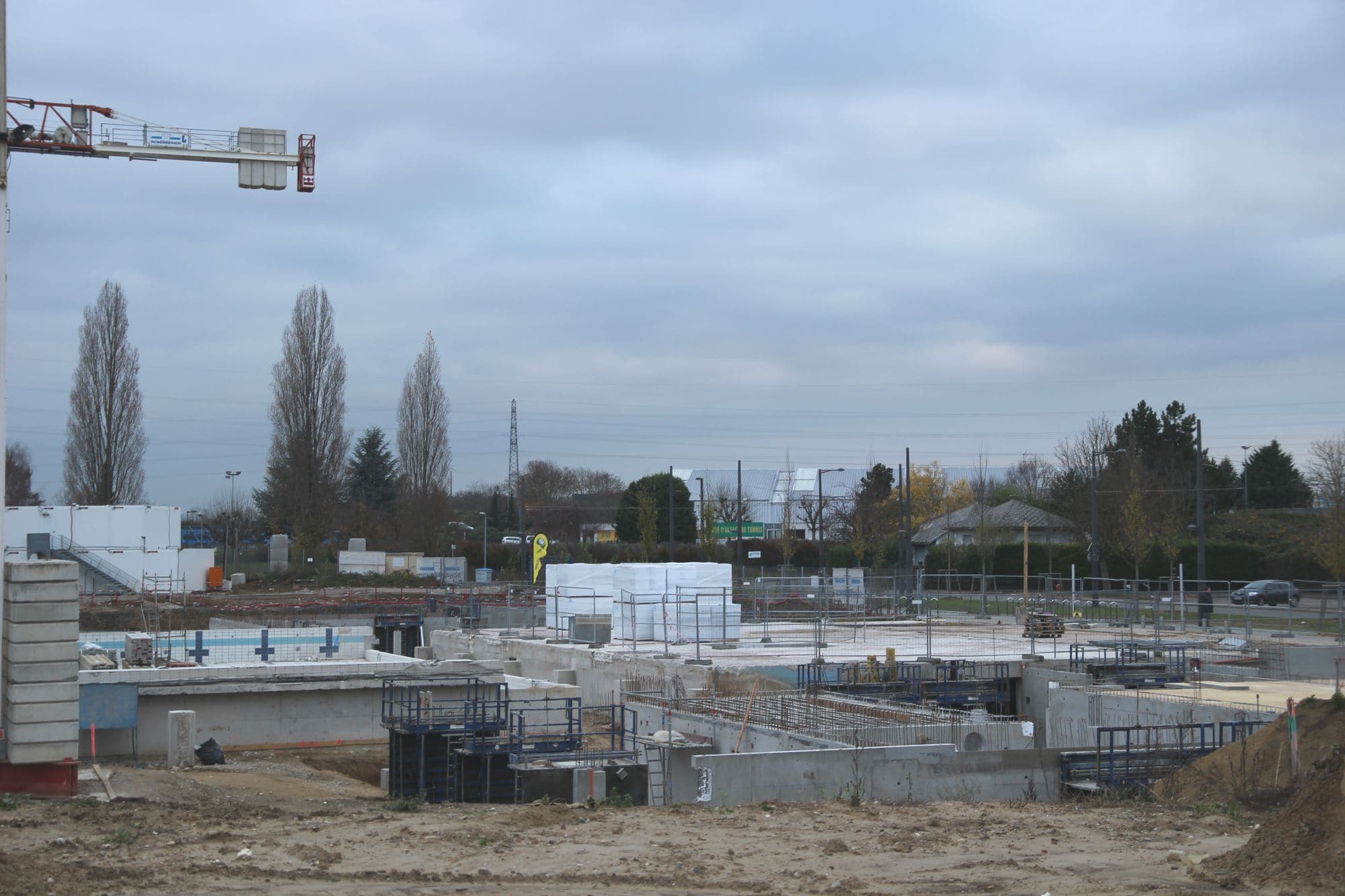 Depuis ce mois de novembre, les travaux de gros-œuvre de la future piscine de Hautepierre au nord-ouest de Strasbourg ont enfin commencé. Le rez-de-chaussé des bâtiments de l’ancienne piscine, à la station de tram Parc des Sports, a été démoli. Ne restent plus que les sous-sols.