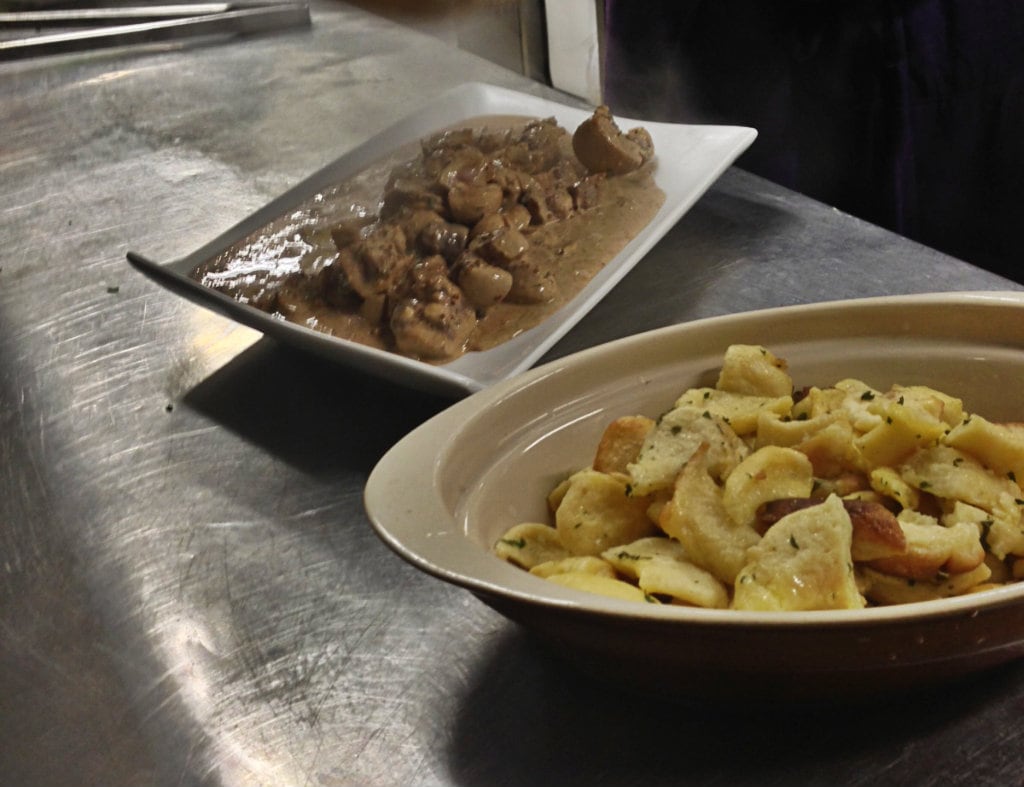 Situé non loin de la cathédrale, l’origine du Saint Sépulcre est sujet à de nombreuses légendes. Certains disent que c’est une table en forme de cercueil qui a donné son nom au restaurant tandis que d’autres racontent que les moines de la cathédrale venaient y boire un verre en passant par les souterrains de la ville. Depuis janvier, c’est Claude Fricker qui a repris le restaurant. Originalité, sur sa carte, les intitulés des plats sont écrits en français, en anglais et même en alsacien. On y retrouve des entrées du terroir (harengs, salades, presskopf, tarte à l’oignon) pour des prix variant entre 7,90€ pour la soupe à l’oignon et 19,50€ pour le foie gras de canard. Au niveau des spécialités, la carte est complète : du jambon en croûte aux bouchées à la reine en passant par les jarrets de porc et le biebeleskäse, tout y est pour des prix variant entre 13,50€ et 23€. Ici la choucroute garnie est à 19,90€, celle au poisson coûte 21€ et le pot-au-feu est à savourer pour 17,90€. Pour les enfants, une formule comprenant jambon en coûte, paire de knacks accompagnées de nouilles ou de pommes sautées et une glace en dessert est disponible pour 9,90€. Pour les desserts régionaux, vous avez le choix entre le mendiant, sorte de pain perdu accompagné de fruits de saison, et la meringue glacée.